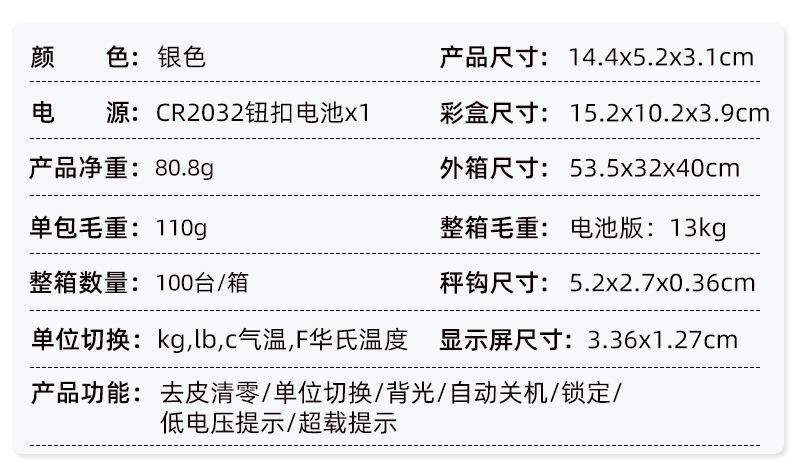 Funciones del producto: Tara/Cambio de unidad/Retroiluminación/Apagado automático/Bloqueo