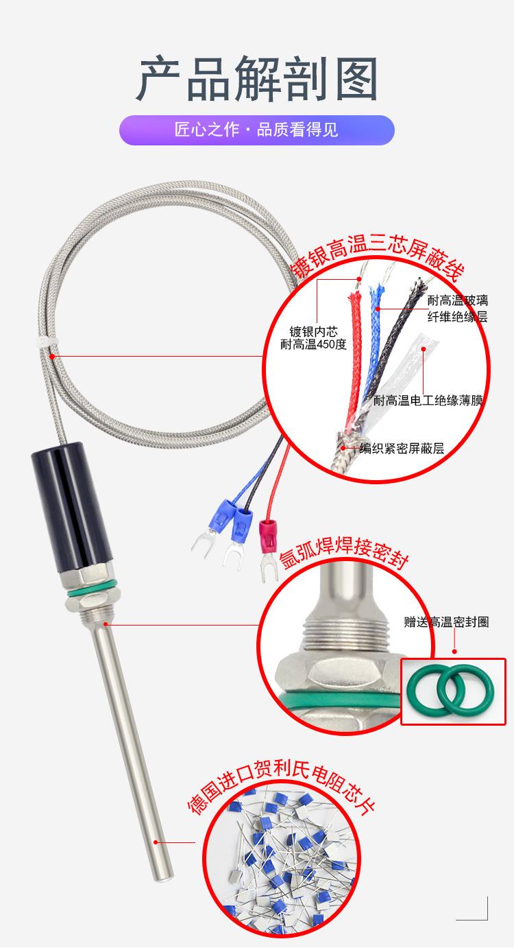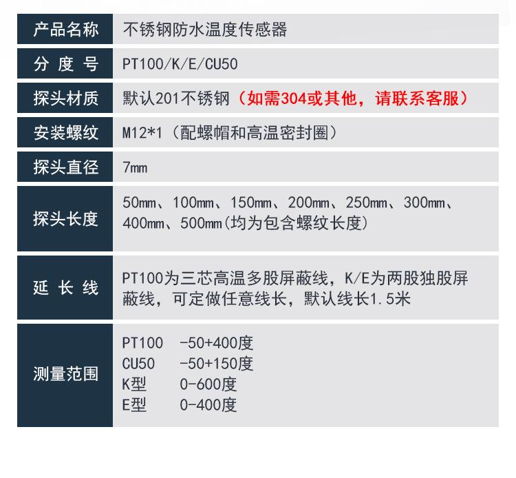 Sensor de temperatura Pt100 resistencia térmica de platino WZP-187 sonda de temperatura impermeable termopar tipo K/E línea de medición de temperatura