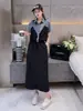 Black suit, Black suit + Western skirt, Black suit + suit pants, Black suit + Western skirt + trousers