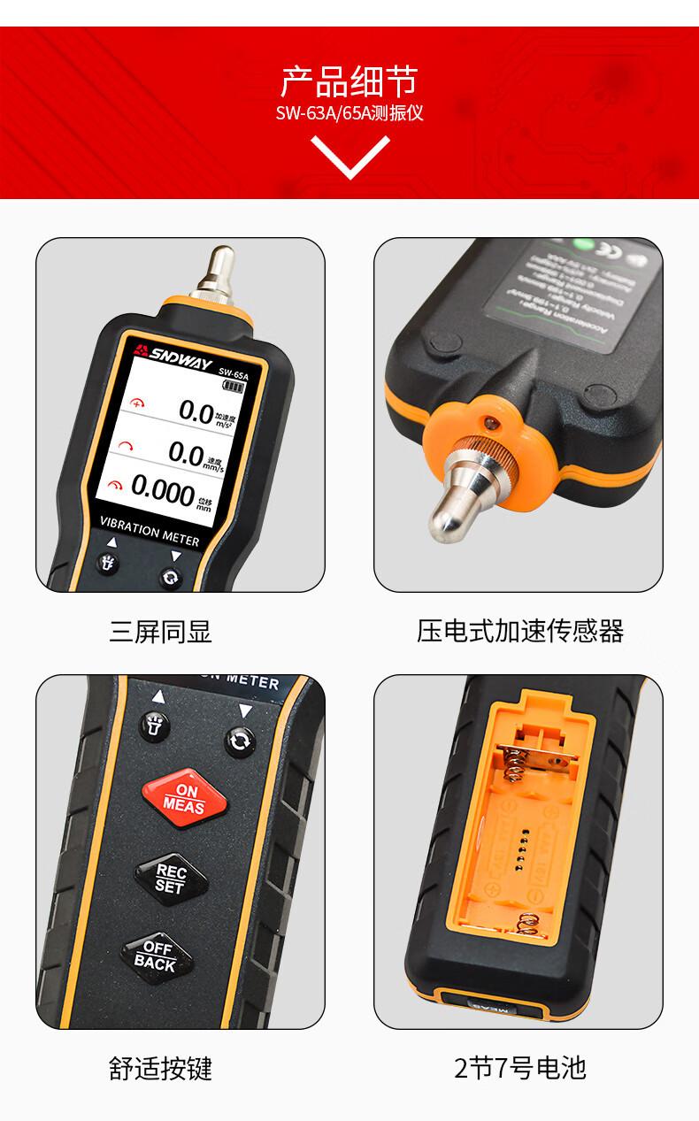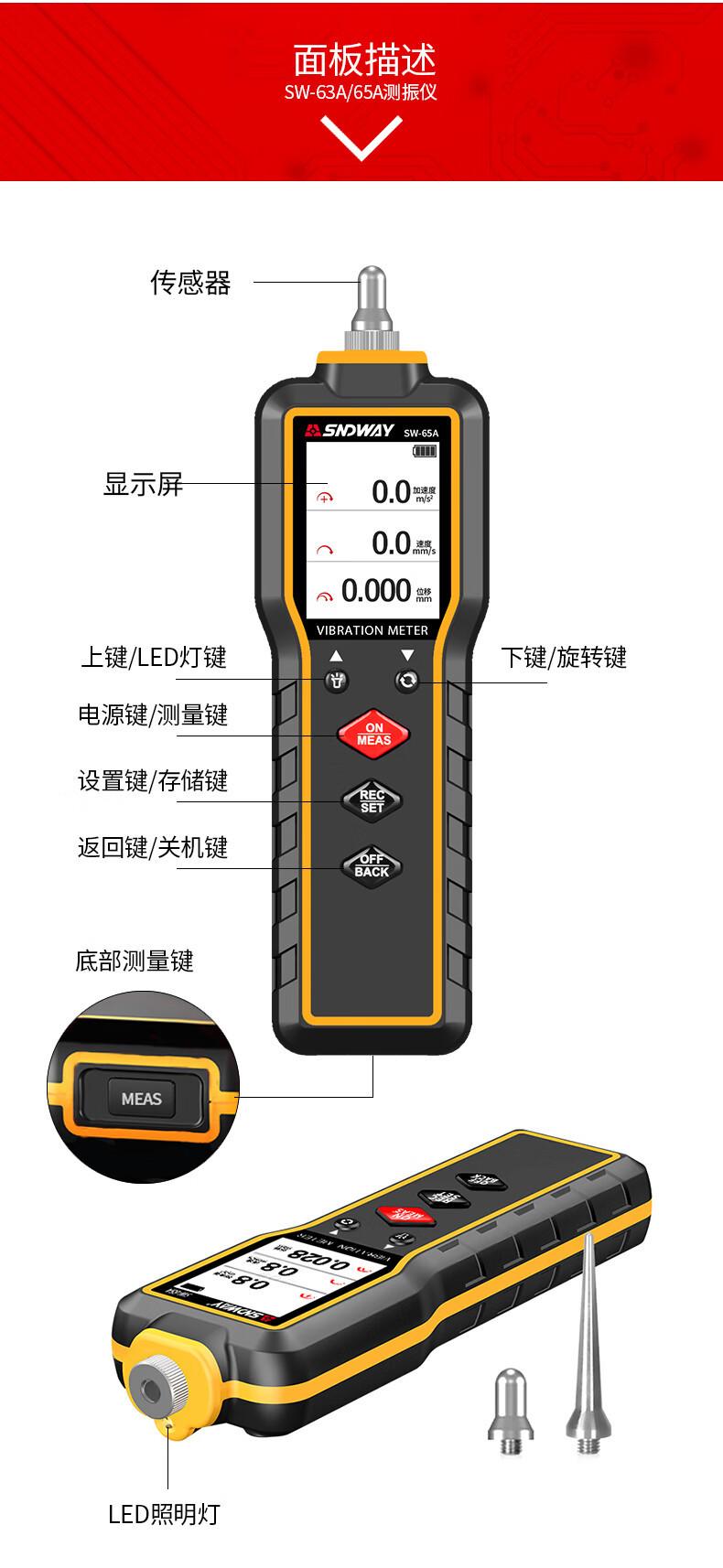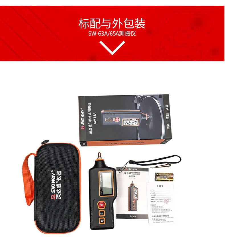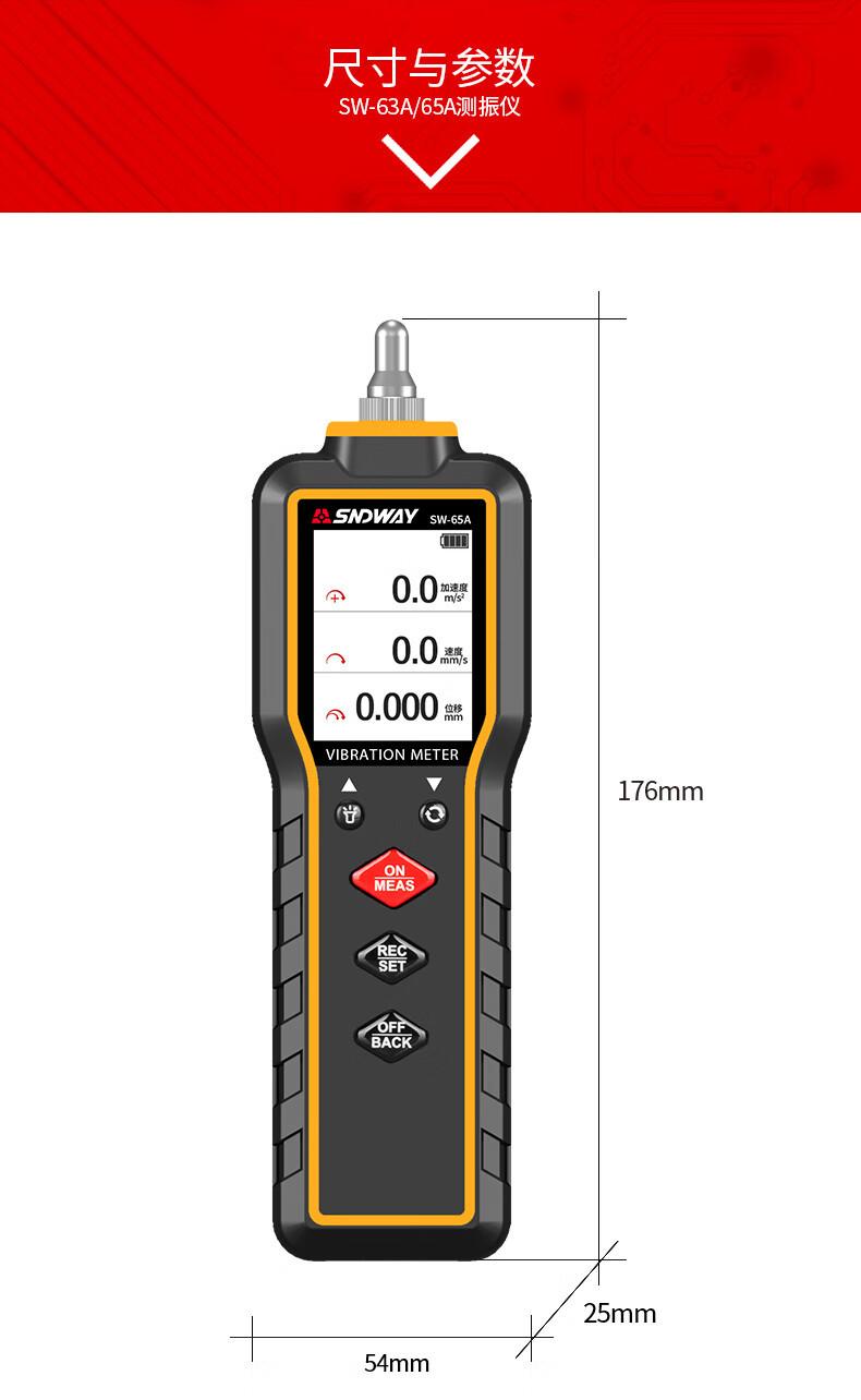 Medidor de vibraciones portátil SNDWAY SW-65A detector de vibraciones de motor sismómetro instrumento de medición de vibraciones