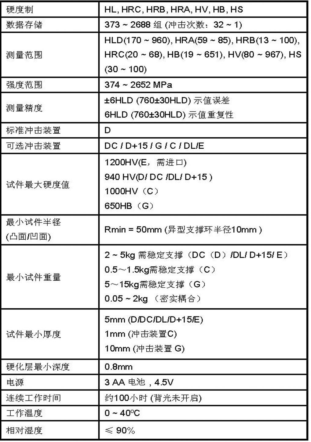 Puede almacenar 373~2688 grupos (tiempos de impacto 32~1) de valores de medición única, valores promedio, fecha de medición, dirección del impacto, tiempos, materiales, sistema de dureza y otra información