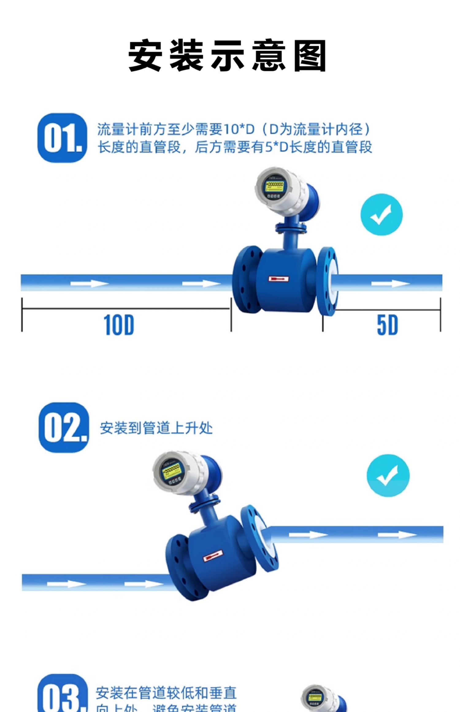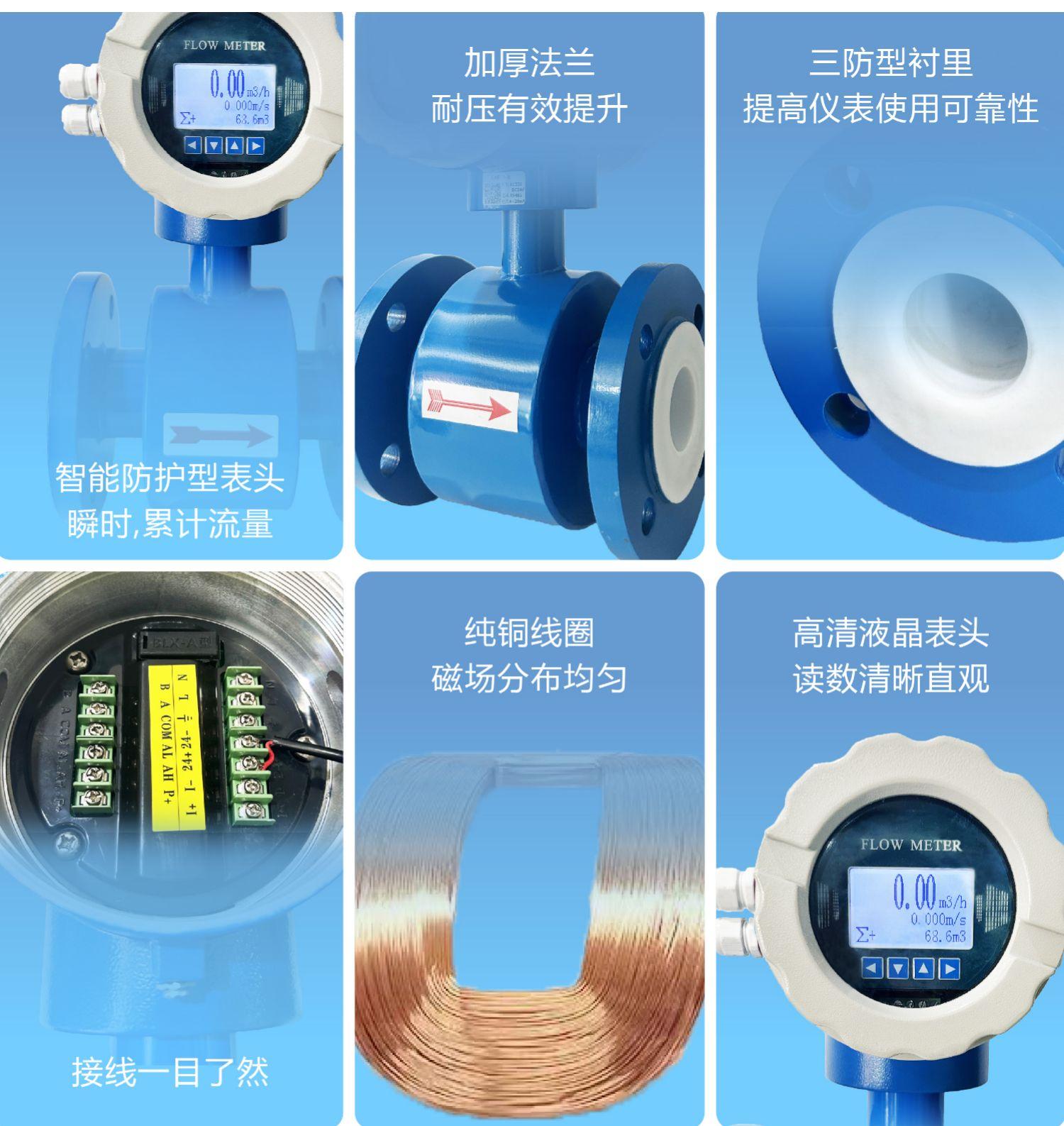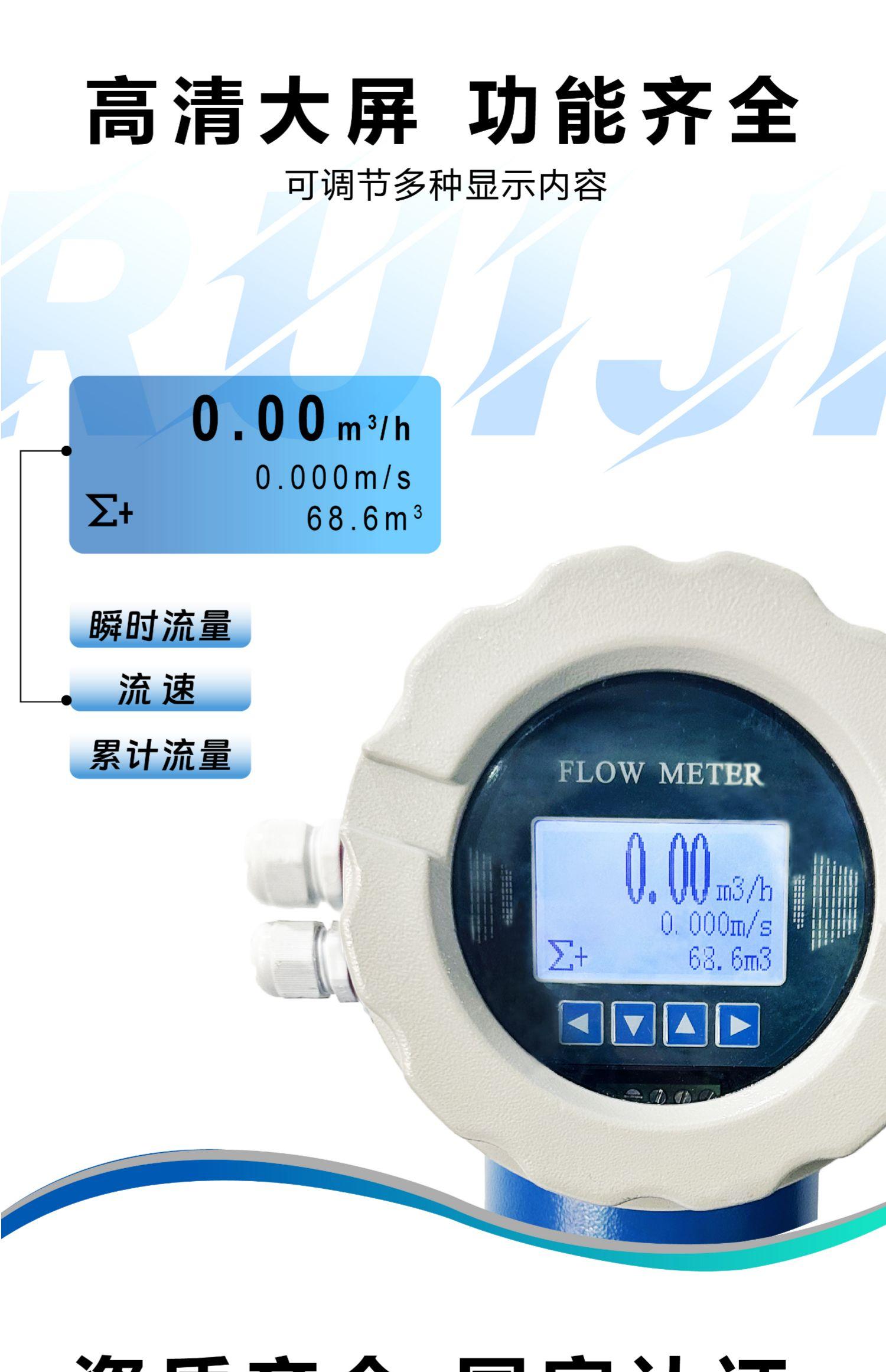 Caudalímetro Electromagnético Agua Líquido Electromagnético Pantalla Digital Tipo Tubería Sensor de Alta Precisión Caudalímetro de Aguas Residuales Integrado