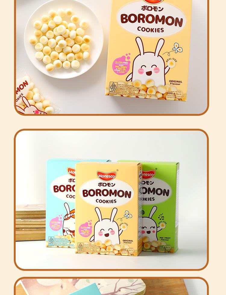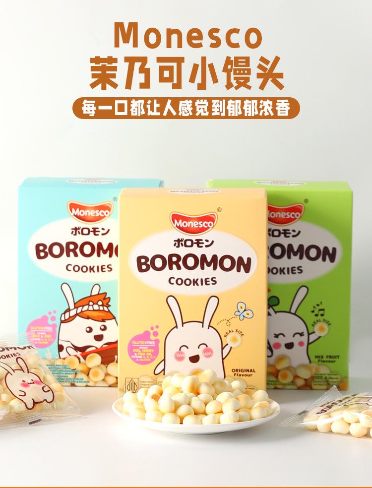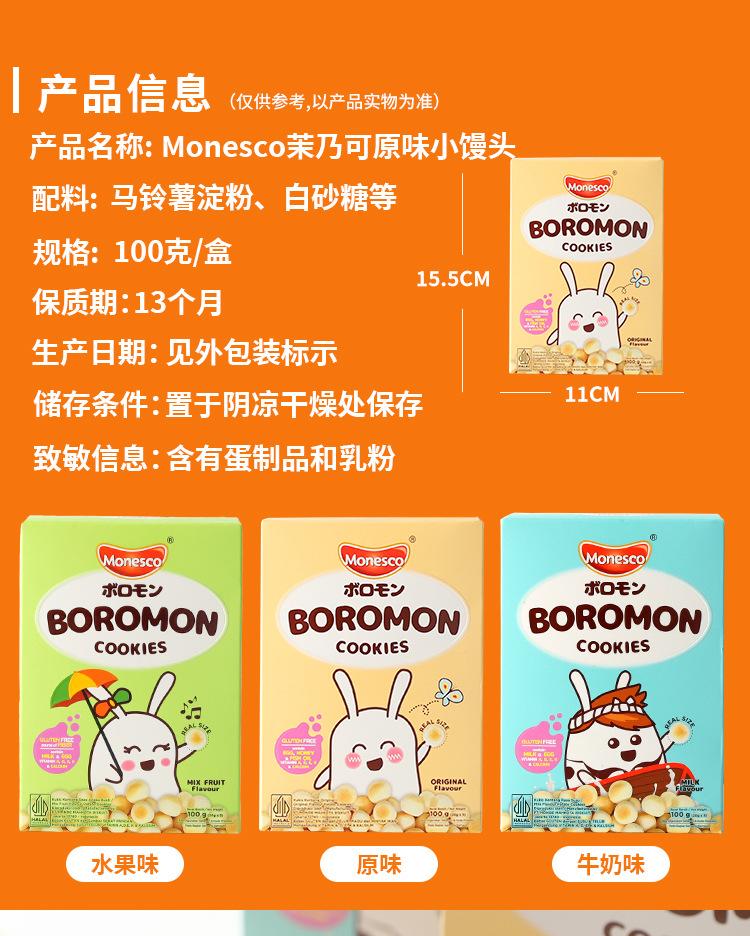 Importado de Indonesia, Monesco Leche de Frutas Original Galletas Panecillo al Vapor Pequeño Snacks de Galletas Crujientes para Niños