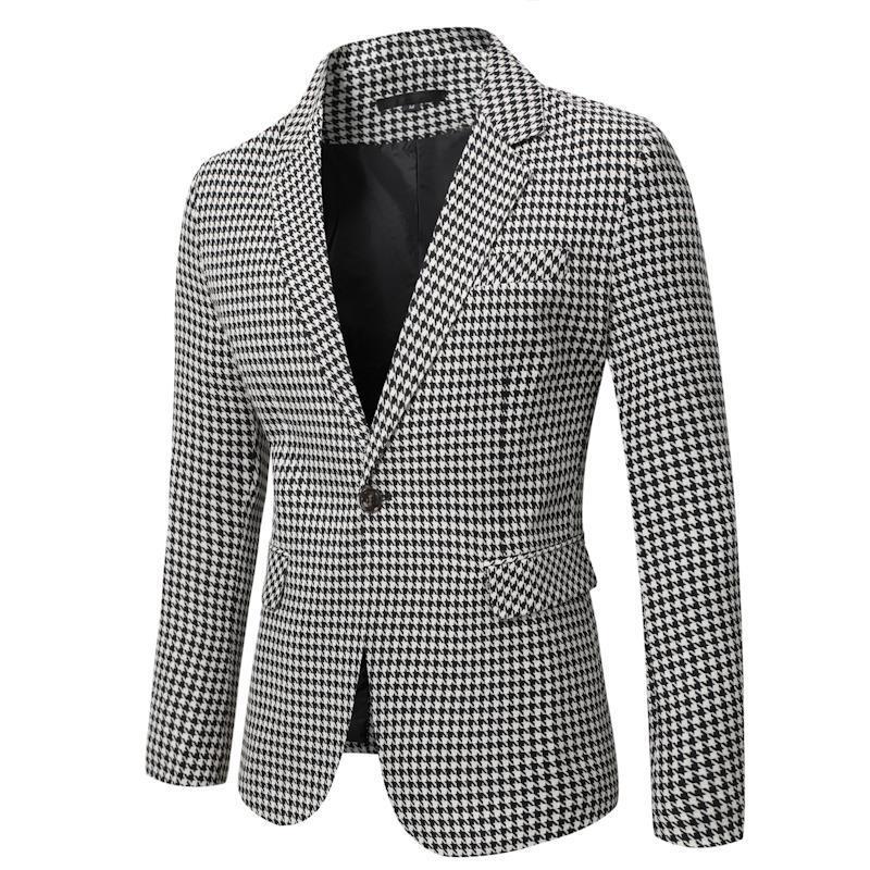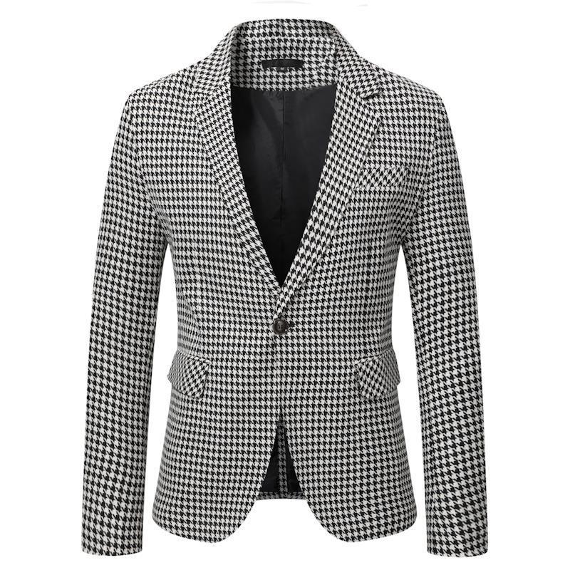 Nuevo Traje Slim a Cuadros Blanco y Negro para Hombre de Moda Casual de Un Botón para Otoño e Invierno de Comercio Exterior Transfronterizo
