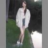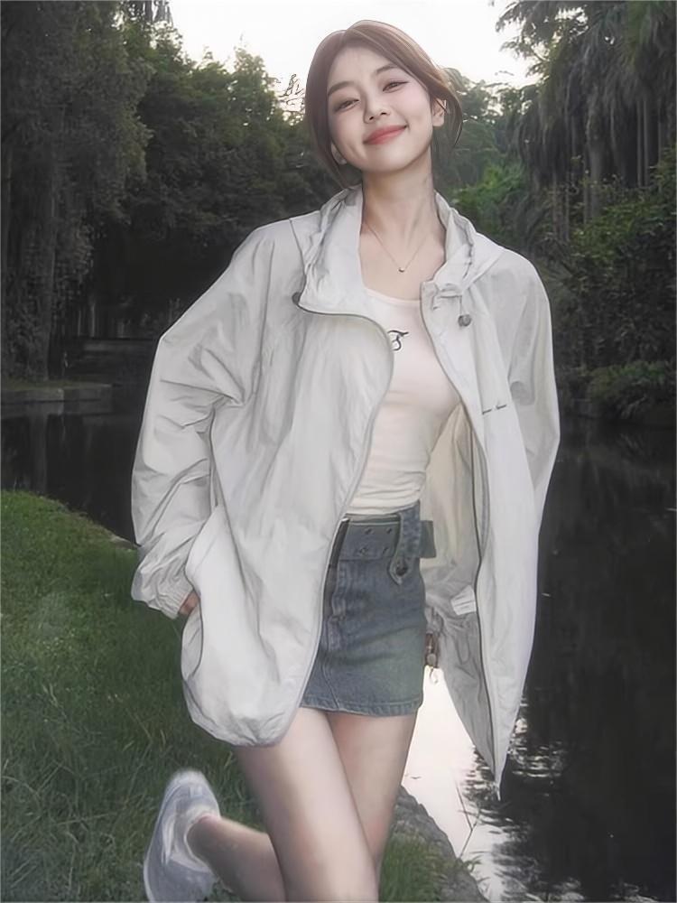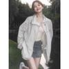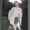 Sombrero de Doble Capa Tejido Original Gris Ropa de Protección Solar para Mujer Nuevo Verano Holgado y Versátil Fino con Capucha