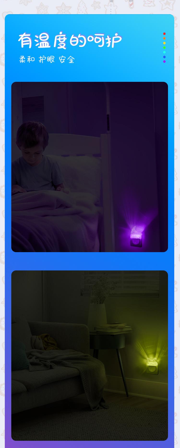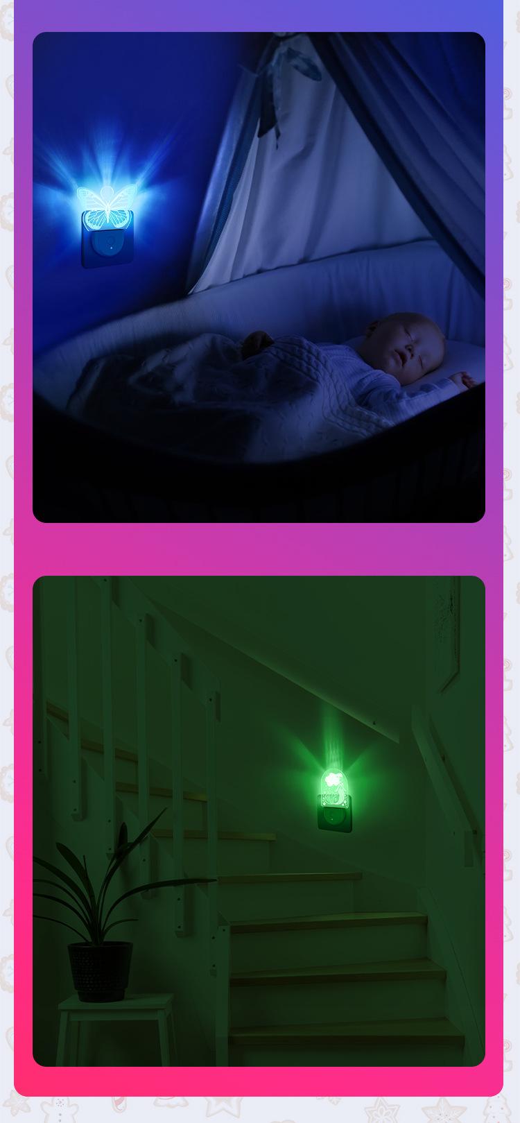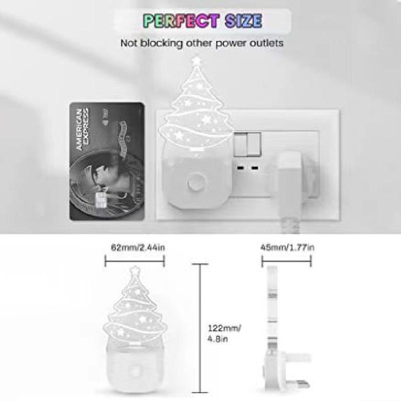 1) Esta luz nocturna LED presenta un color sólido, un panel transparente y un diseño en forma de árbol de Navidad. El enchufe compacto no bloquea el segundo tomacorriente del enchufe; 2) El sensor de anochecer a amanecer guía la luz nocturna para que se apague automáticamente. Se enciende cuando está oscuro en interiores porque el sensor detecta la oscuridad, y se apaga cuando el sensor recibe luz; 3) Con esta luz nocturna LED, no tiene que encender la luz principal al levantarse en medio de la noche, y no habrá tropiezos ni luz deslumbrante; 4) Ahorra mucho en las facturas de electricidad porque es una luz nocturna LED, tiene una larga vida útil de 20,000 horas, no requiere reemplazo de bombilla y no necesita baterías; 5) Enchufe la luz nocturna, ahorrando la molestia de la instalación o la configuración. Es muy fácil de usar. Simplemente conéctela al enchufe, e iluminará toda la habitación; 6) Diseño compacto y apariencia moderna. No bloquea el segundo tomacorriente del enchufe, y su apariencia elegante y moderna combina bien con los muebles del hogar; 7) Luz nocturna de bajo consumo y que ayuda a dormir para habitaciones infantiles, bebés, guarderías y dormitorios de personas mayores; 8) Varias aplicaciones. La luz nocturna roja es adecuada para dormitorios, baños, pasillos, cocinas, escaleras, garajes, habitaciones infantiles y guarderías.
