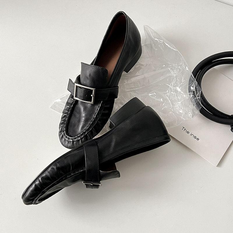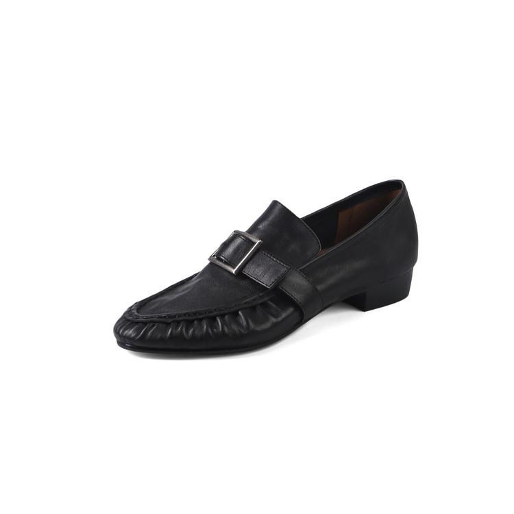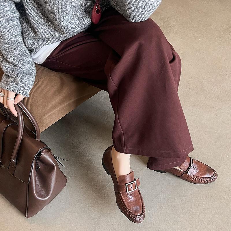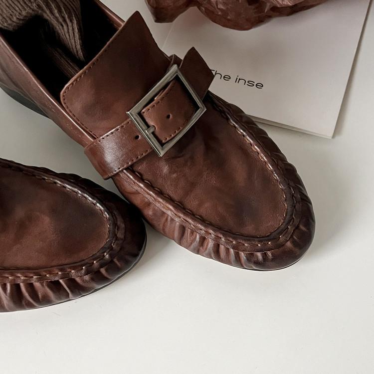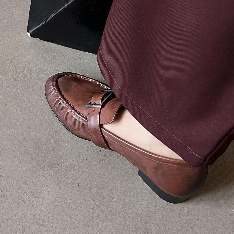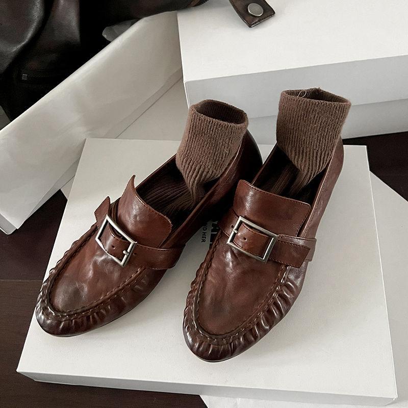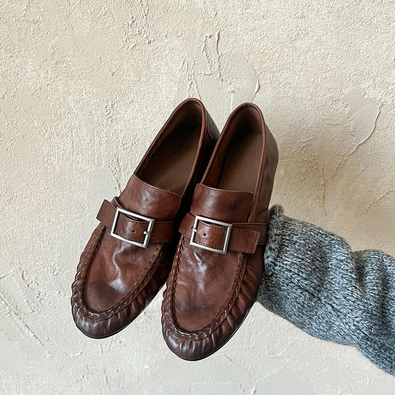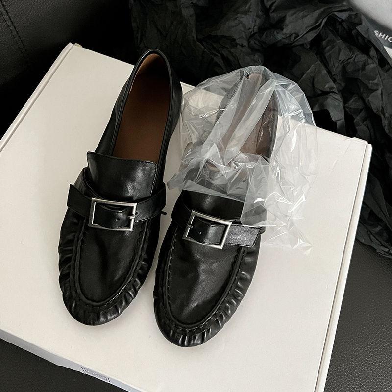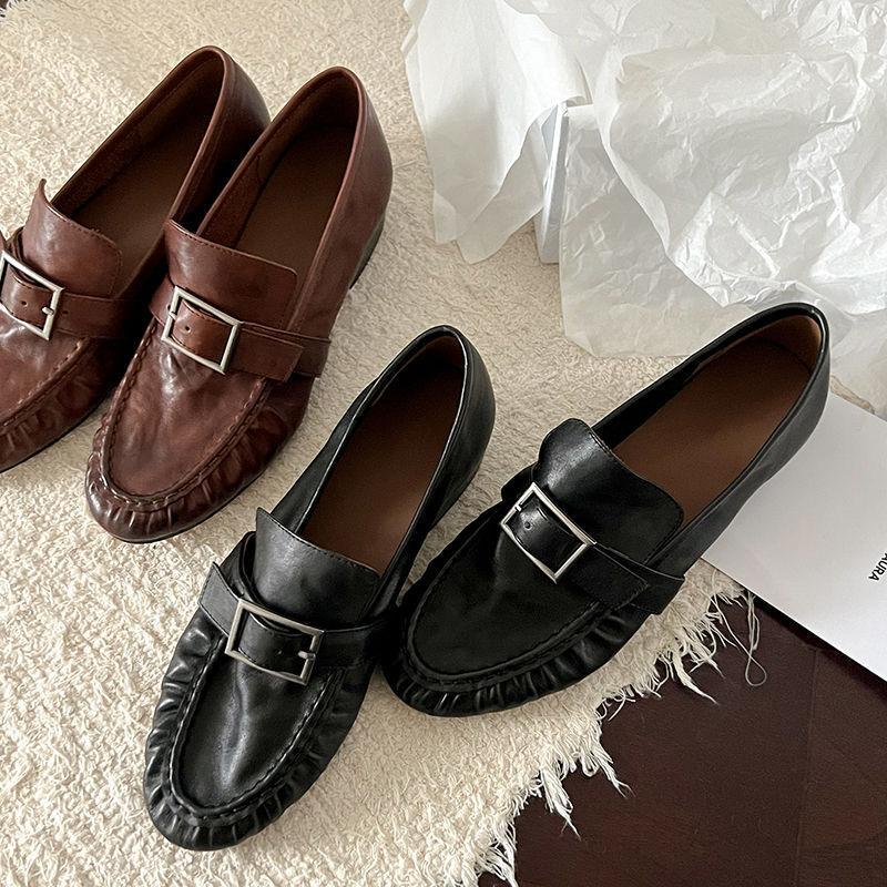 Zapatos de Moda Casual de Piel de Vaca Suave Zapatos de Moda Suela de Tendón Antideslizante Zapatos de Cuero Pequeños para Mujer Tacón Bajo Talla Grande Zapatos de Cuero Genuino para Mujer