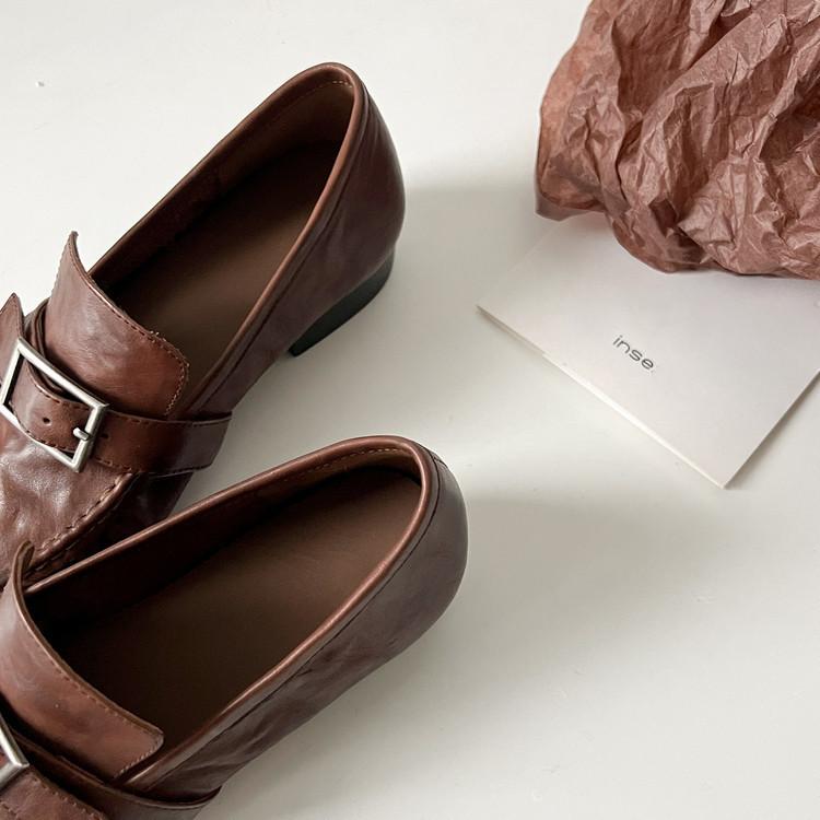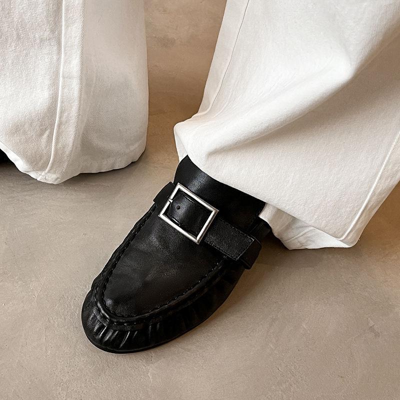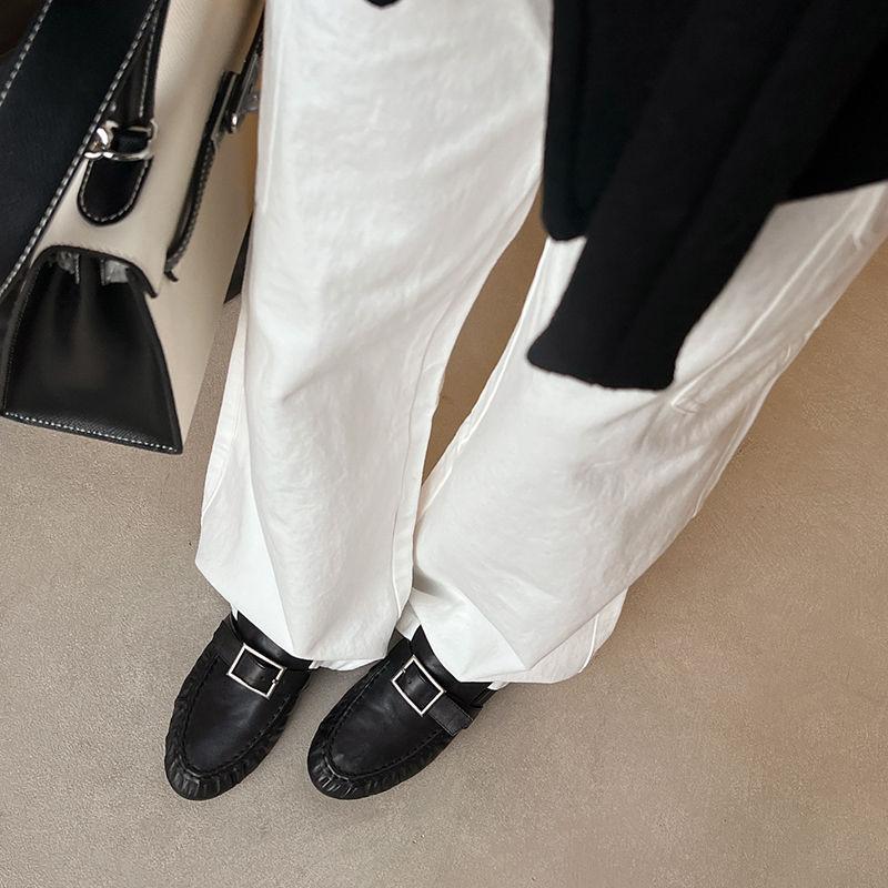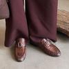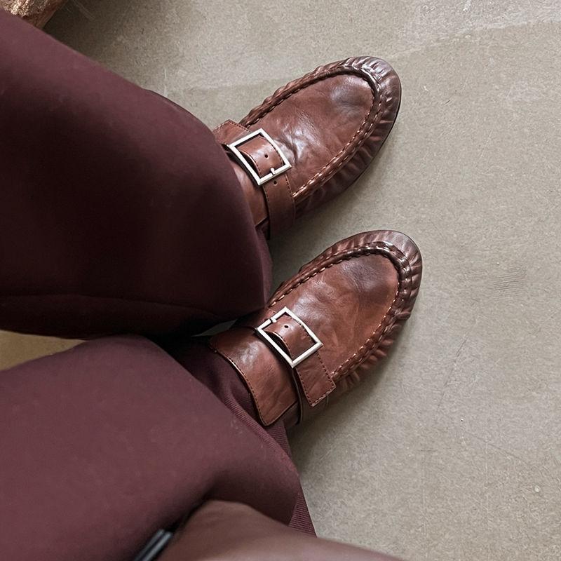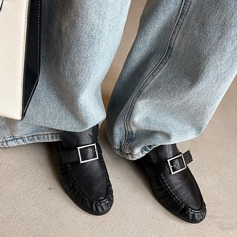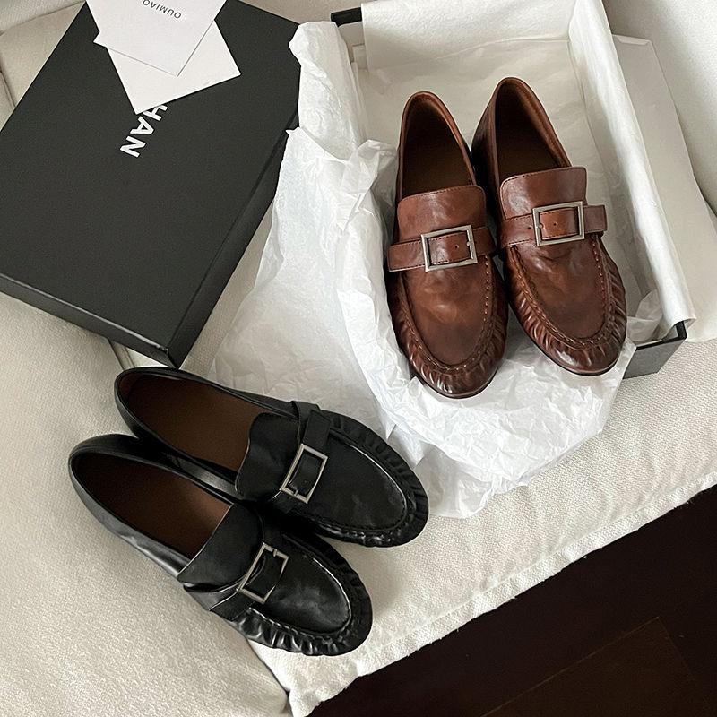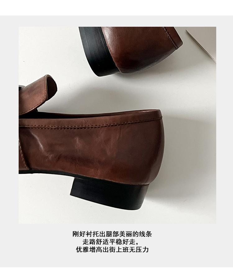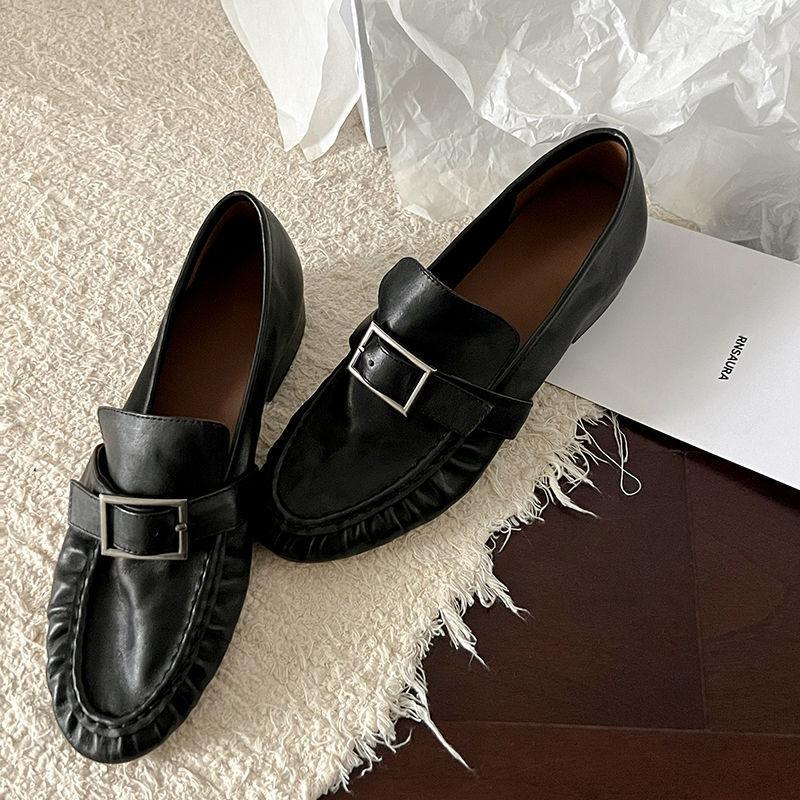 Zapatos de Moda Casual de Piel de Vaca Suave Zapatos de Moda Suela de Tendón Antideslizante Zapatos de Cuero Pequeños para Mujer Tacón Bajo Talla Grande Zapatos de Cuero Genuino para Mujer