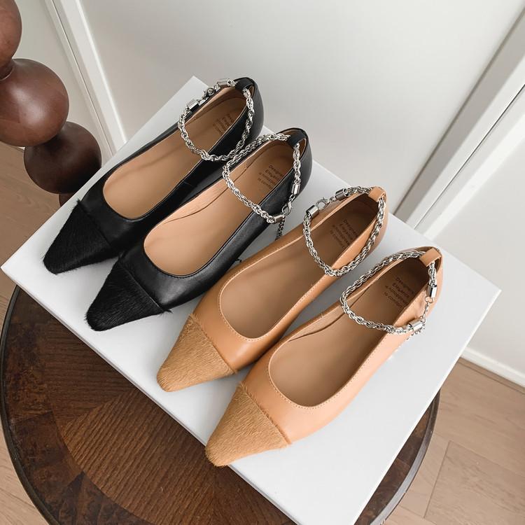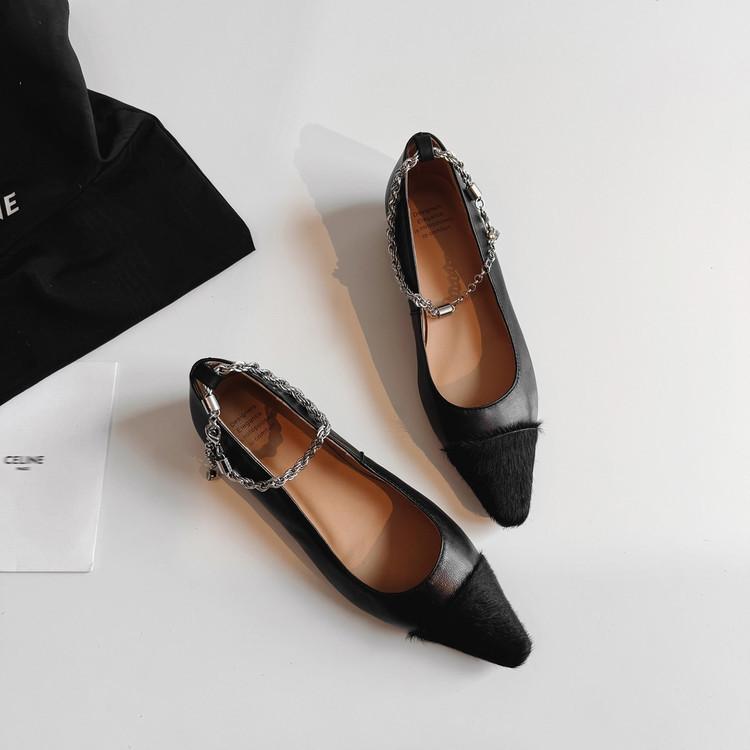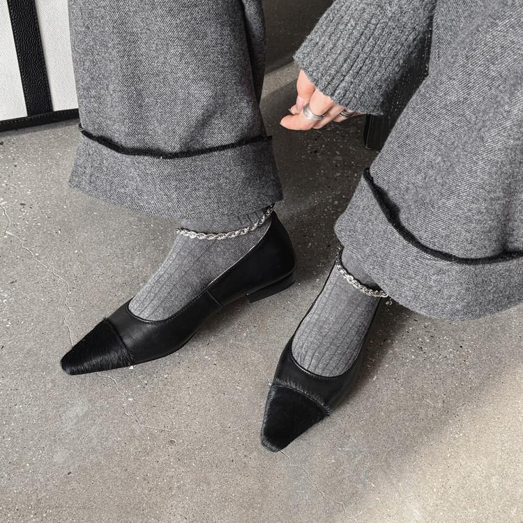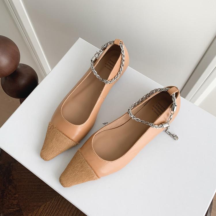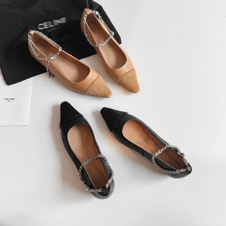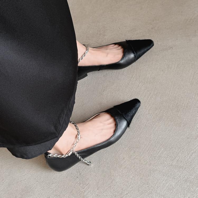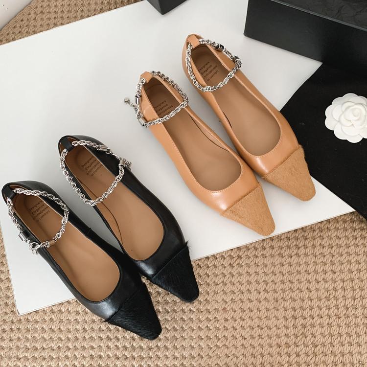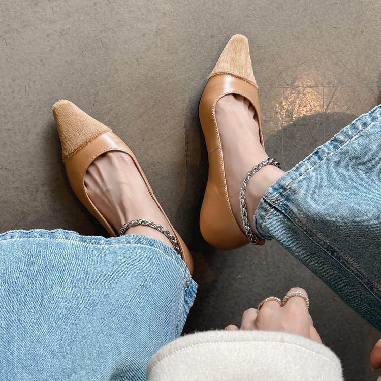 Zapatos de Cuero Genuino de Color Sólido Nuevos para Todas las Estaciones Zapatos de Moda para Mujer Punta Afilada Suela de Tendón Antideslizante Talla Grande Tacón Bajo Zapatos de Cuero Pequeños