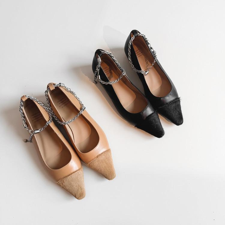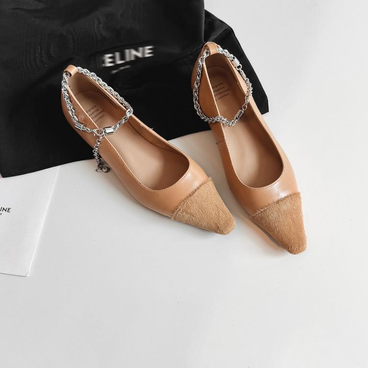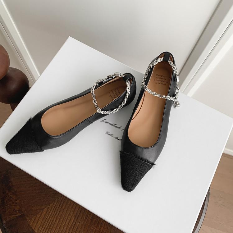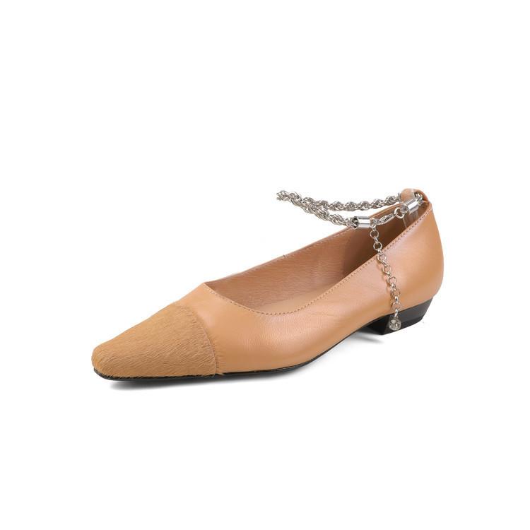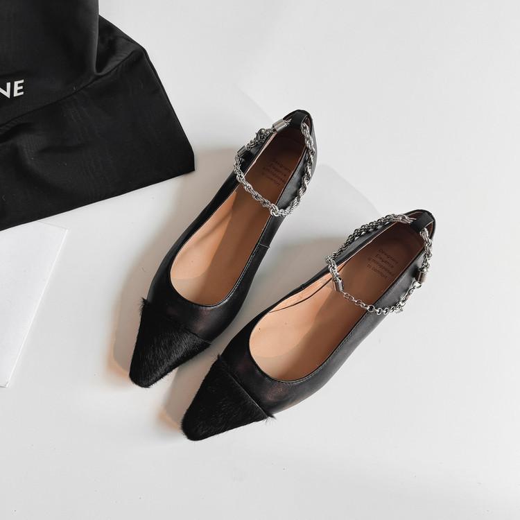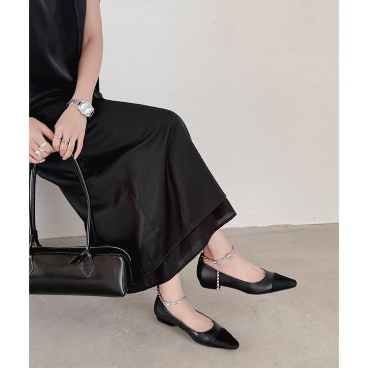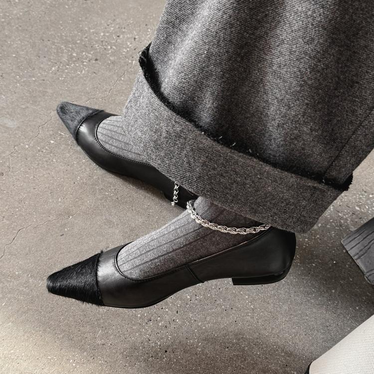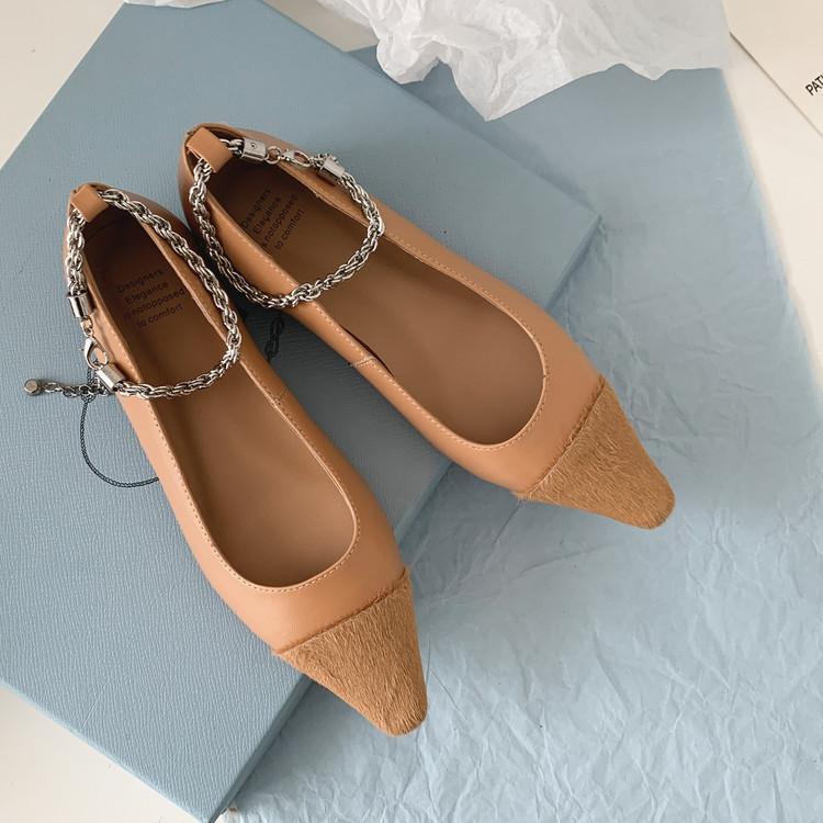 Zapatos de Cuero Genuino de Color Sólido Nuevos para Todas las Estaciones Zapatos de Moda para Mujer Punta Afilada Suela de Tendón Antideslizante Talla Grande Tacón Bajo Zapatos de Cuero Pequeños