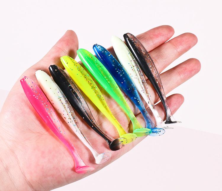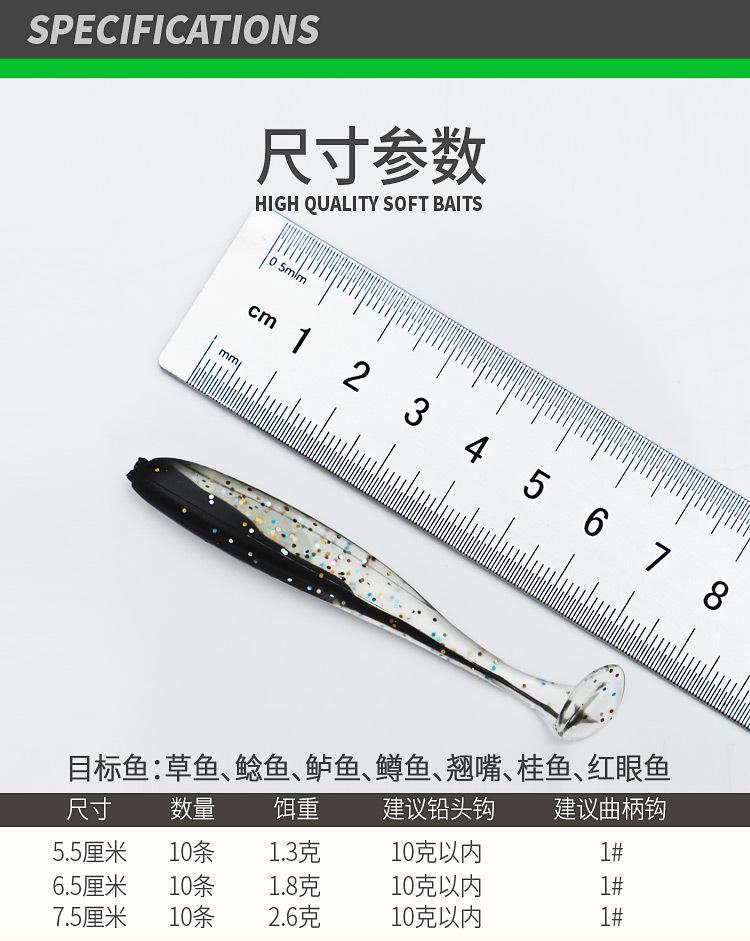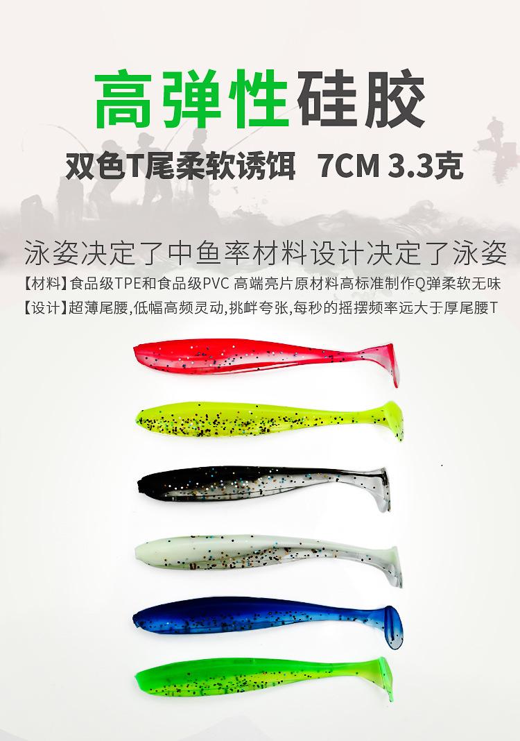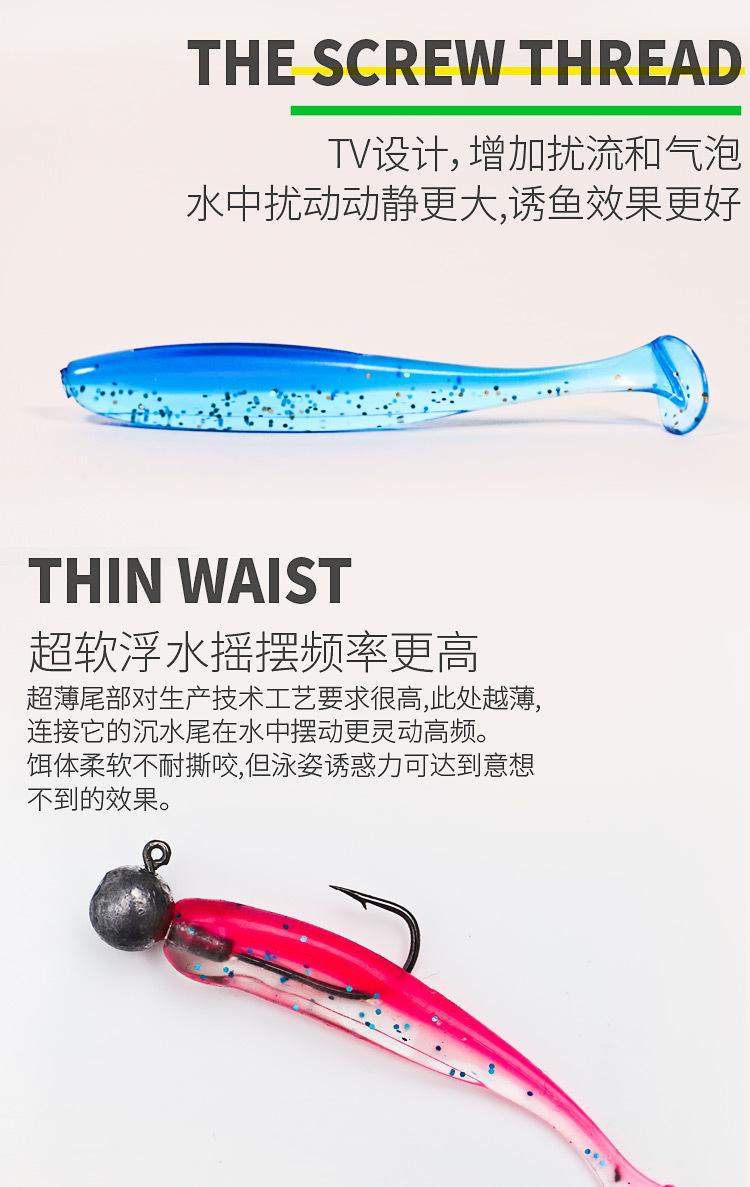 Nuevo señuelo blando de cola en T de dos colores para pesca de agua dulce invertida, cola en T, Luya, gusano blando, anzuelo con cabeza de plomo, microobjeto, lance largo, señuelo falso para lubina