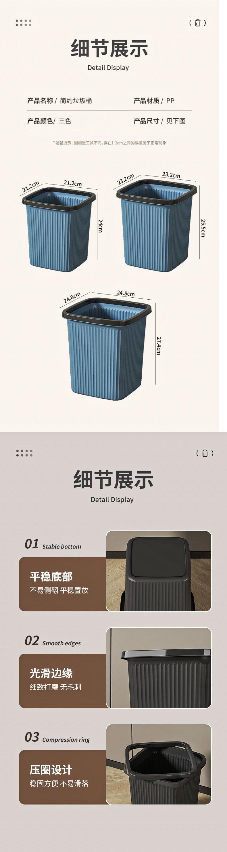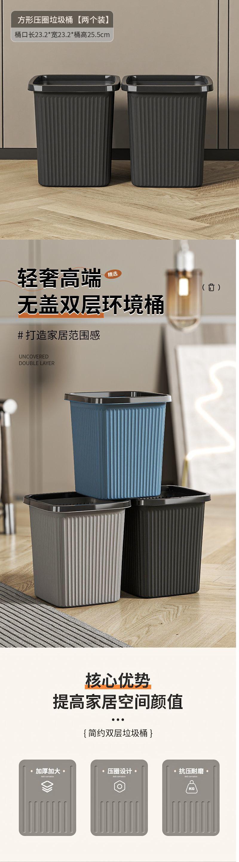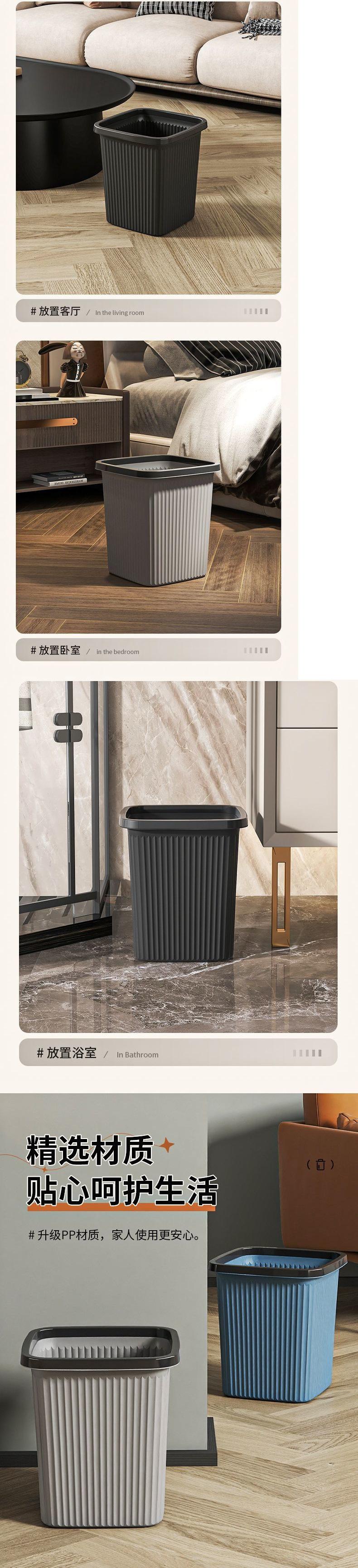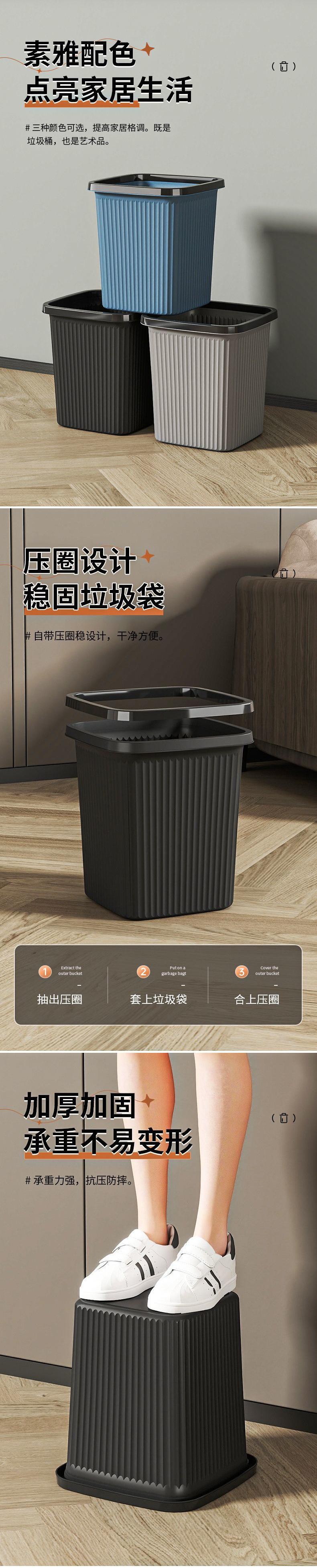 Bote de Basura para Cocina en Casa, Sala de Estar, Dormitorio, Baño, Inodoro, Oficina, Tamaño Grande Sin Tapa, Gran Capacidad Aro de Presión Cesto de Papel