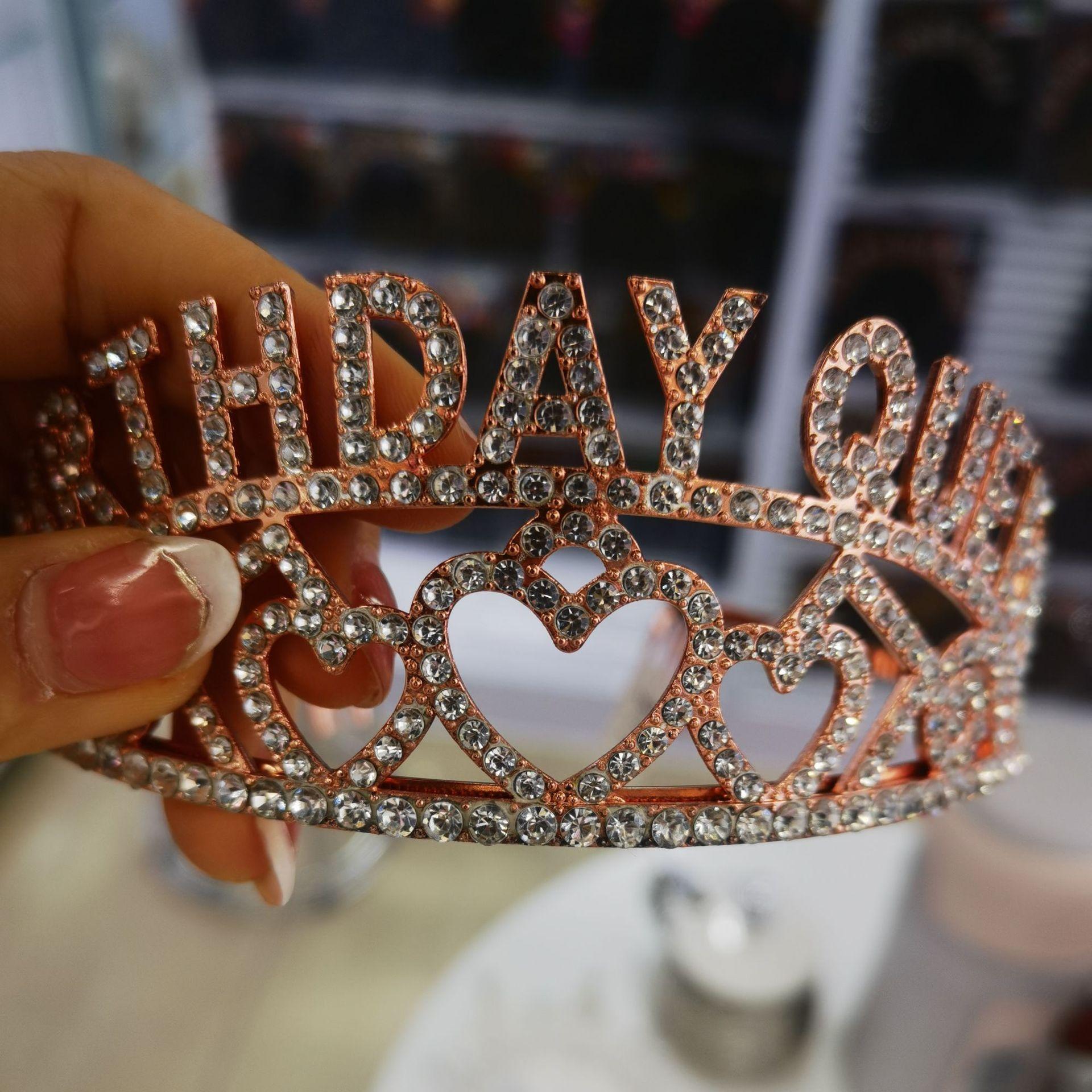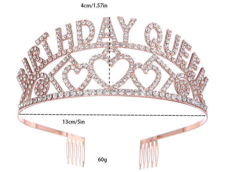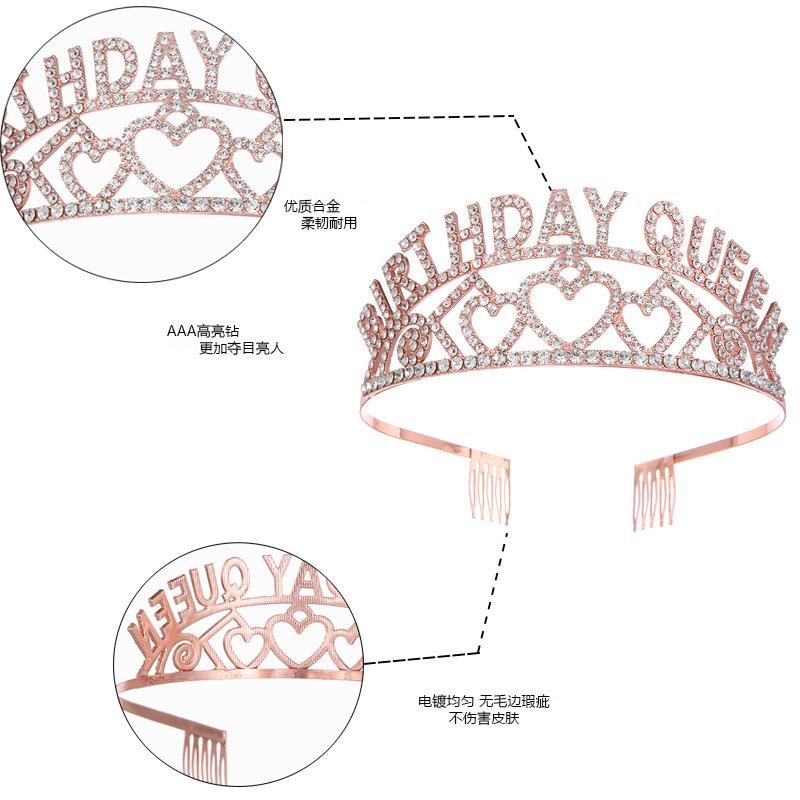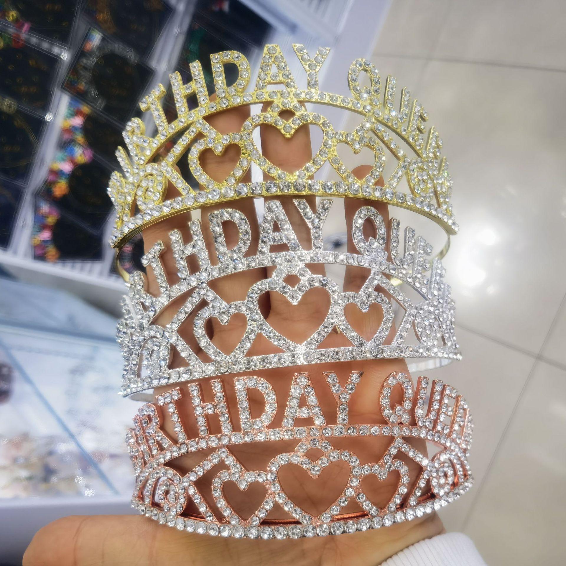 Venta caliente transfronteriza oro plata oro rosa corona pedrería corona REINA DE CUMPLEAÑOS diadema para fiesta de CUMPLEAÑOS accesorios para el cabello