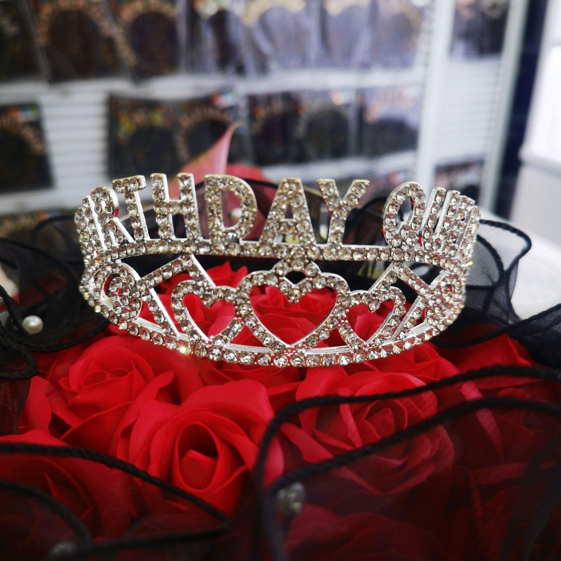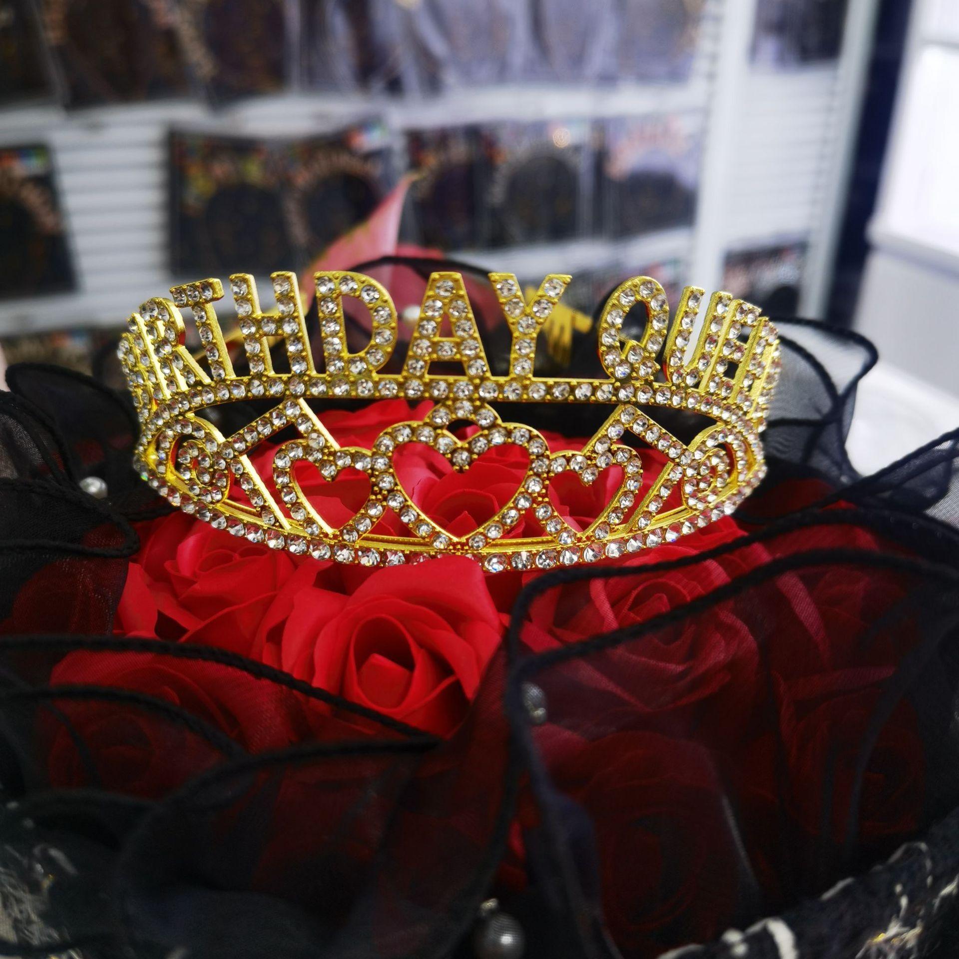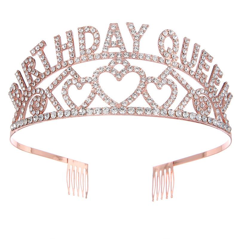 Venta caliente transfronteriza oro plata oro rosa corona pedrería corona REINA DE CUMPLEAÑOS diadema para fiesta de CUMPLEAÑOS accesorios para el cabello