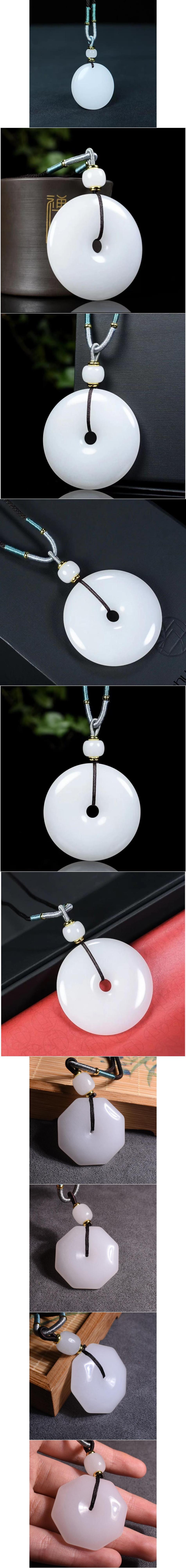 Colgante Liso de Jade Blanco de Xinjiang Seda Dorada Joyería de Jade Suministro en Vivo Viene con la Misma Cuerda