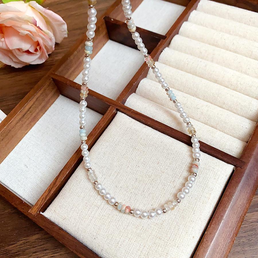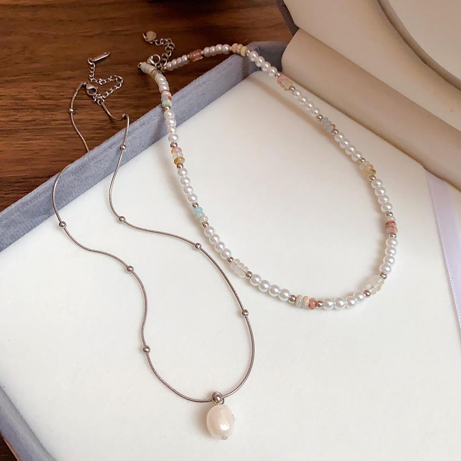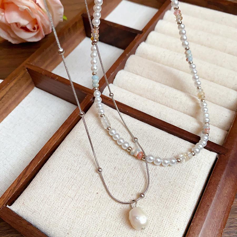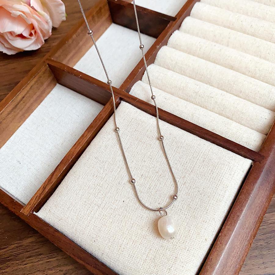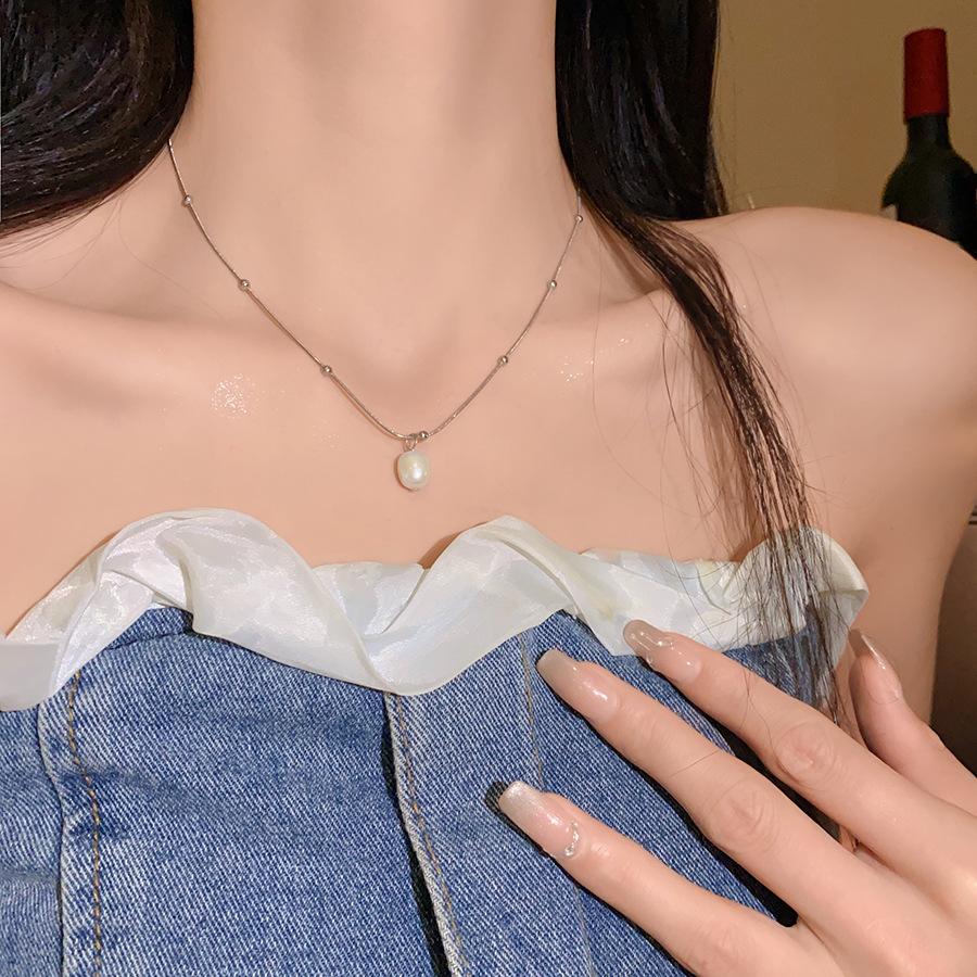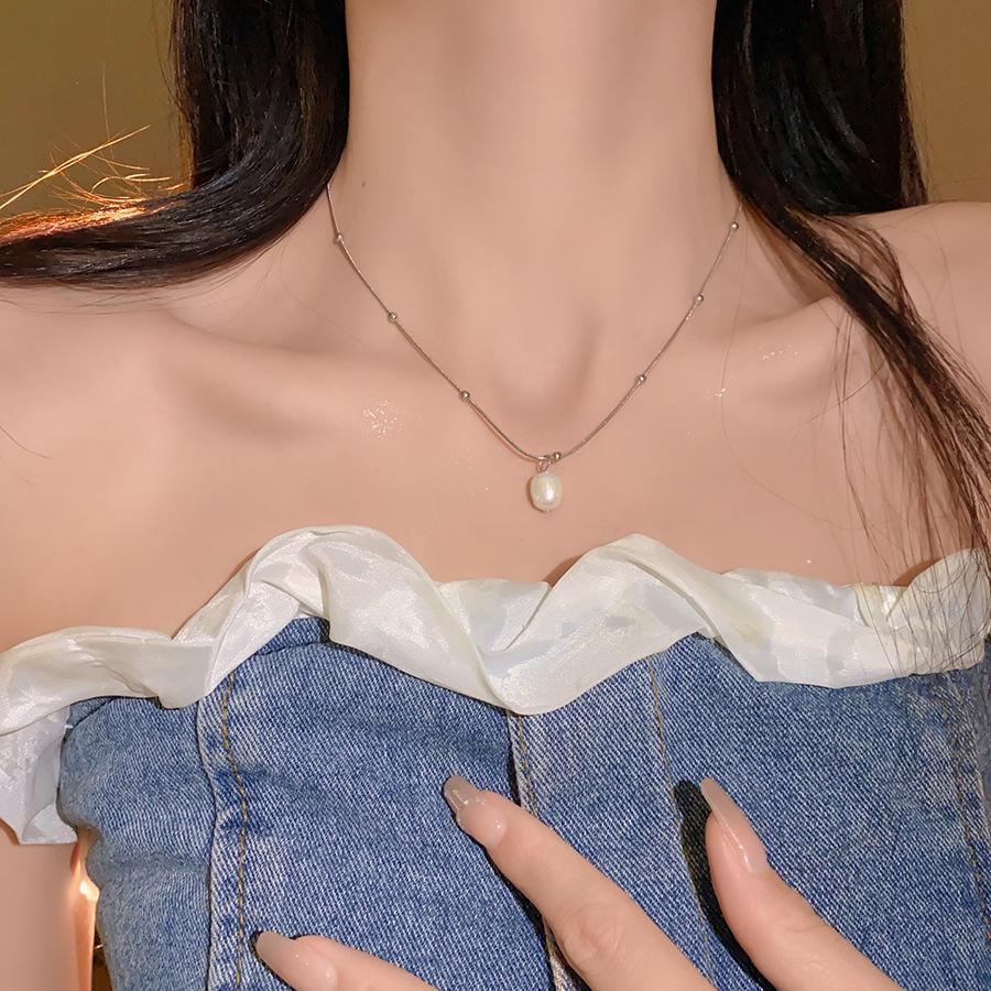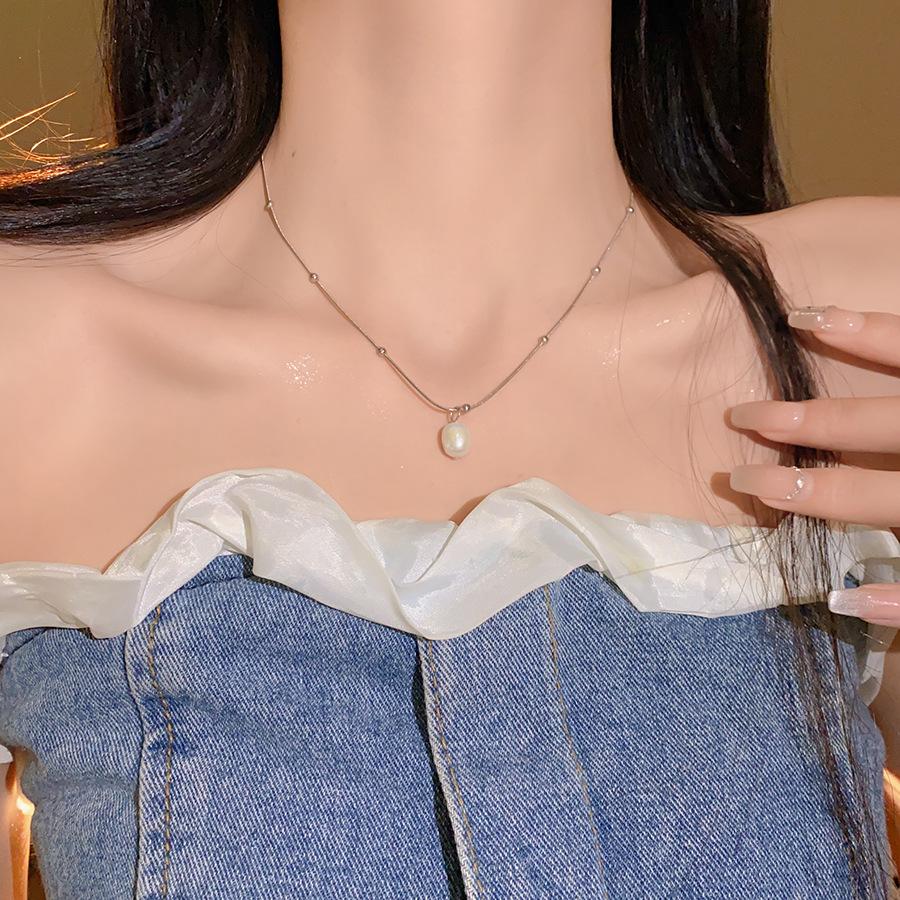 Collar con colgante de perla de agua dulce de acero de titanio estilo retro francés cadena clavicular nicho alta gama joyería de lujo ligero al por mayor
