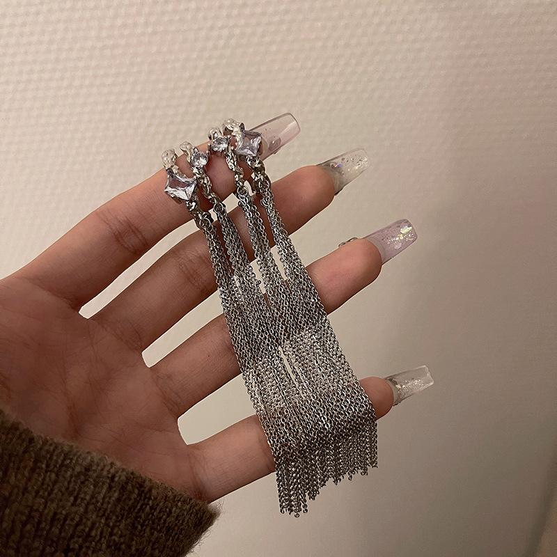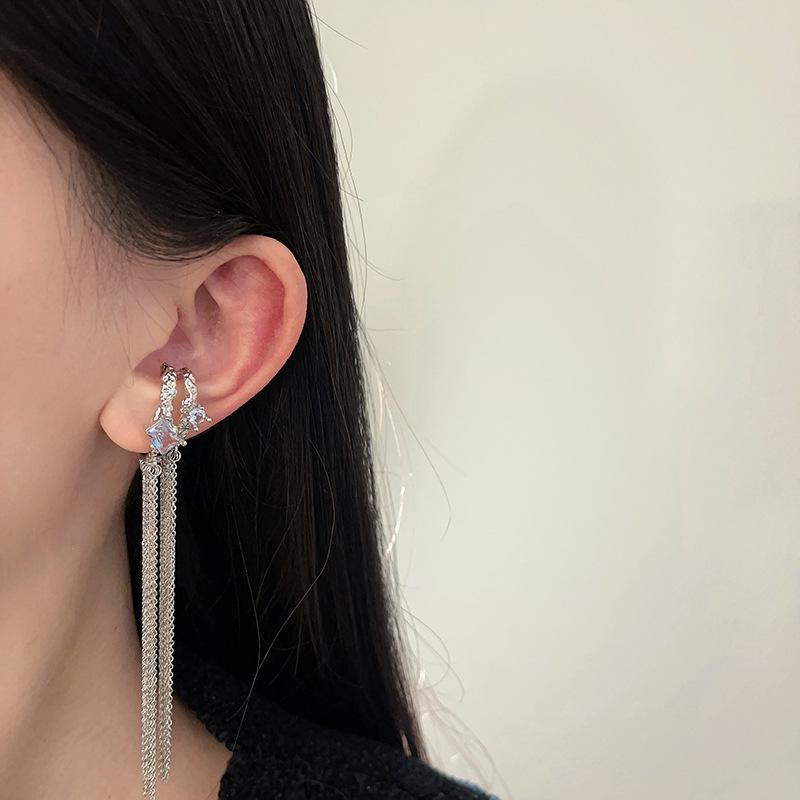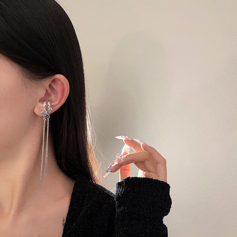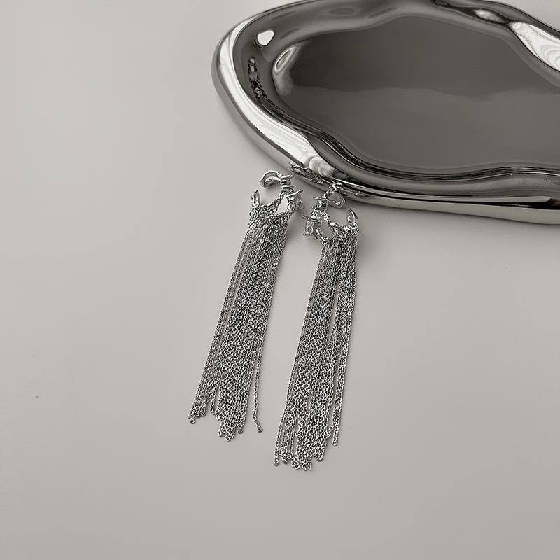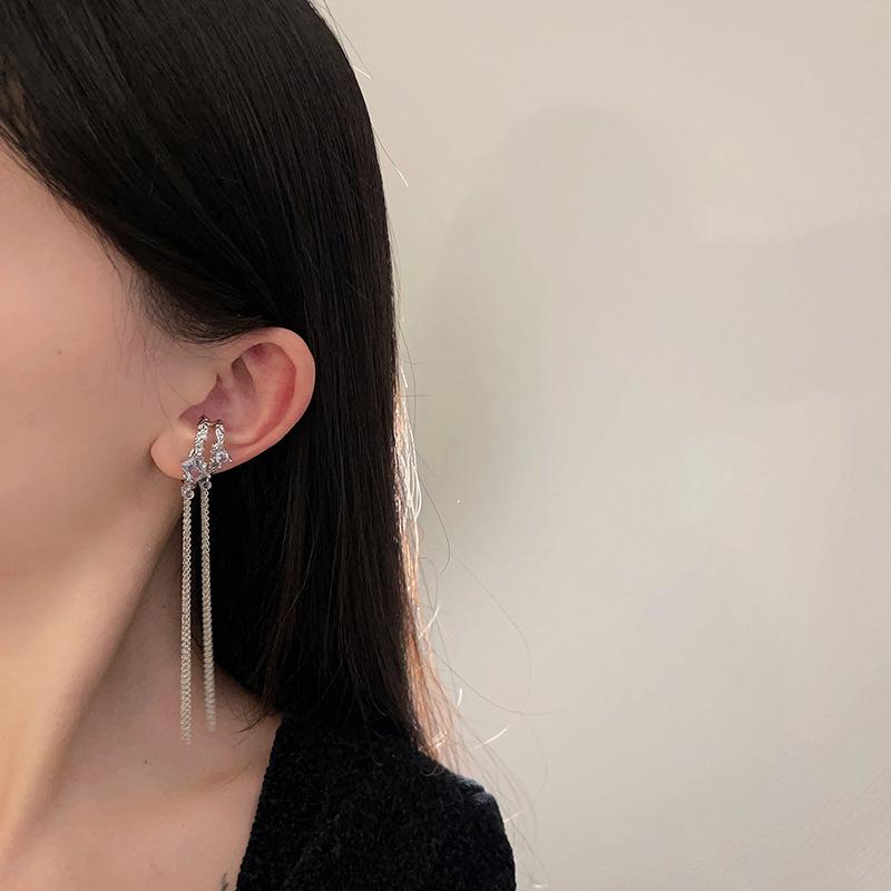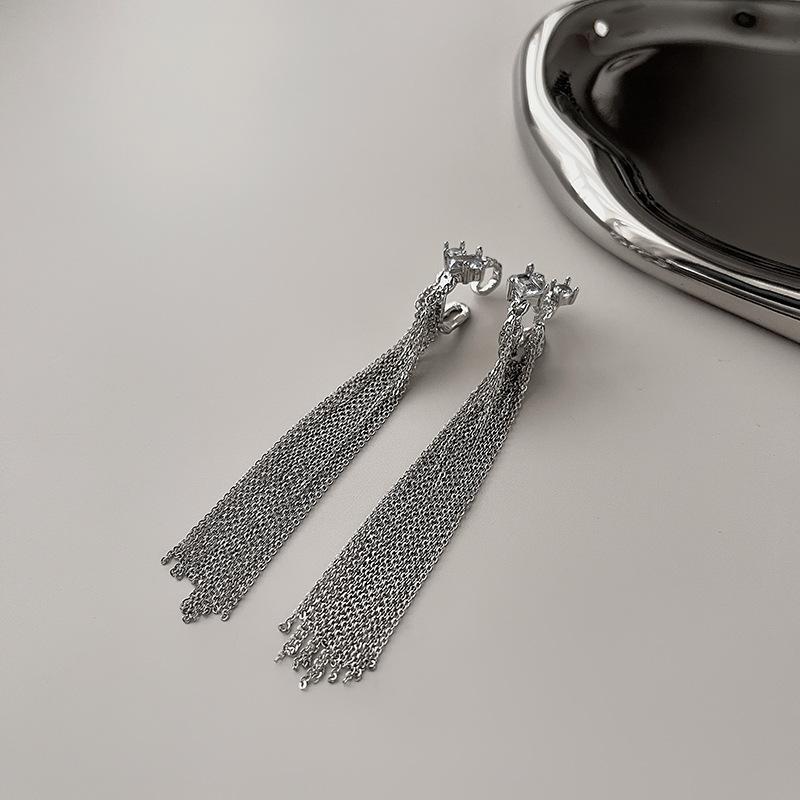 Clip para la oreja sin agujeros en la oreja Clip para la oreja para mujer Borla Colgante largo para la oreja Diseño de nicho de lujo ligero Aretes elegantes Aretes