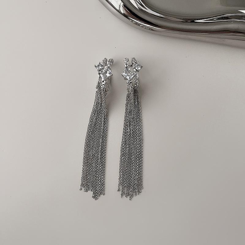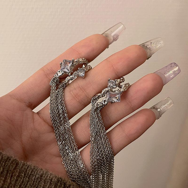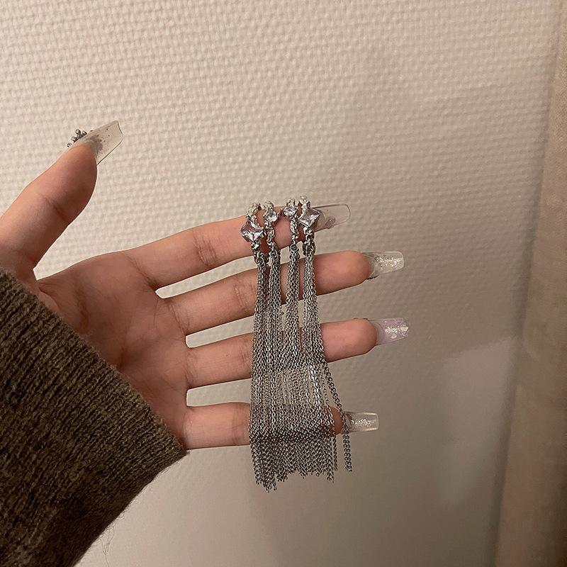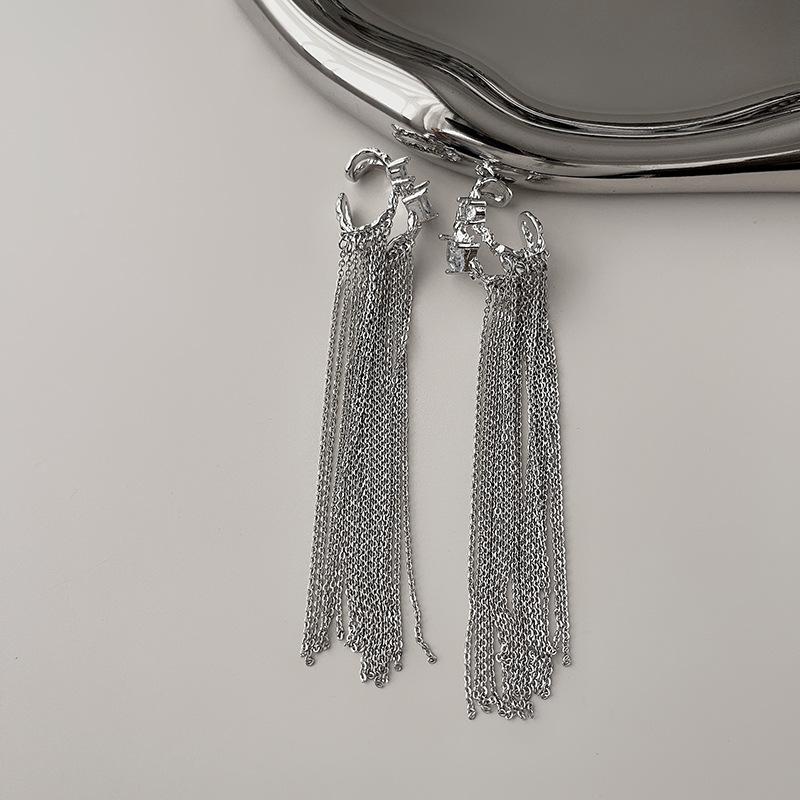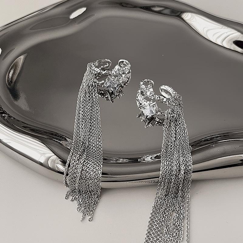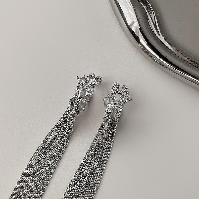 Clip para la oreja sin agujeros en la oreja Clip para la oreja para mujer Borla Colgante largo para la oreja Diseño de nicho de lujo ligero Aretes elegantes Aretes