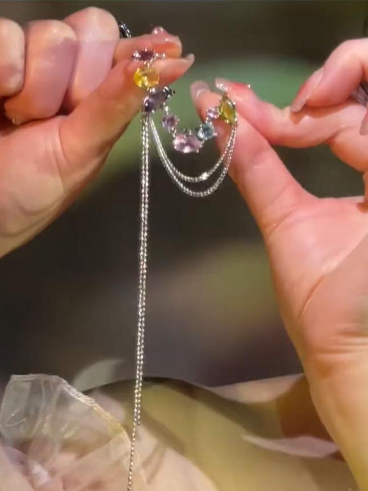 Aretes Irregulares de Circonita con Borla Redonda Nicho Temperamento de Lujo Ligero Clips para Oreja Versátiles Moda Aretes de Gama Alta al Por Mayor