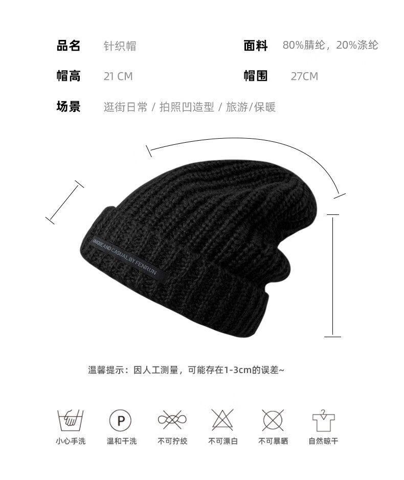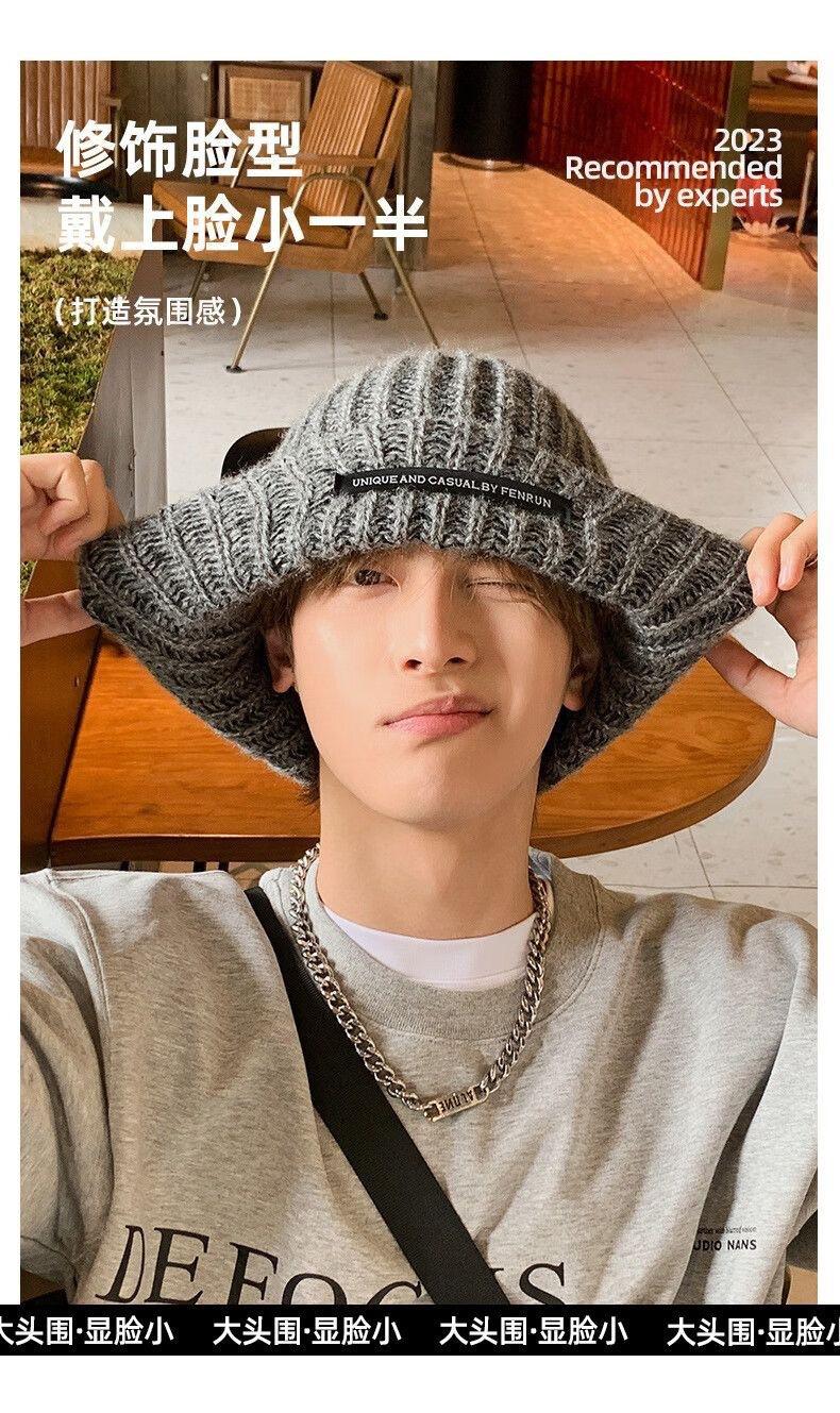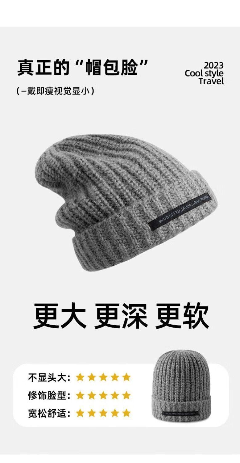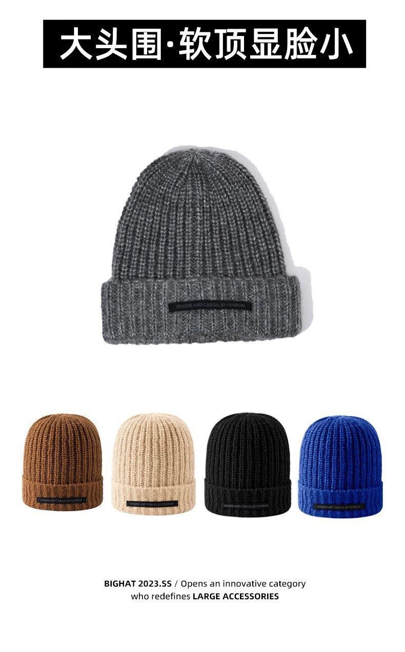 Sombrero de Lana para Hombre y Mujer Circunferencia de Cabeza Grande Cara Pequeña Sombrero para el Frío Otoño e Invierno 2024 Nuevo Sombrero Tejido Cálido Grueso a Prueba de Viento