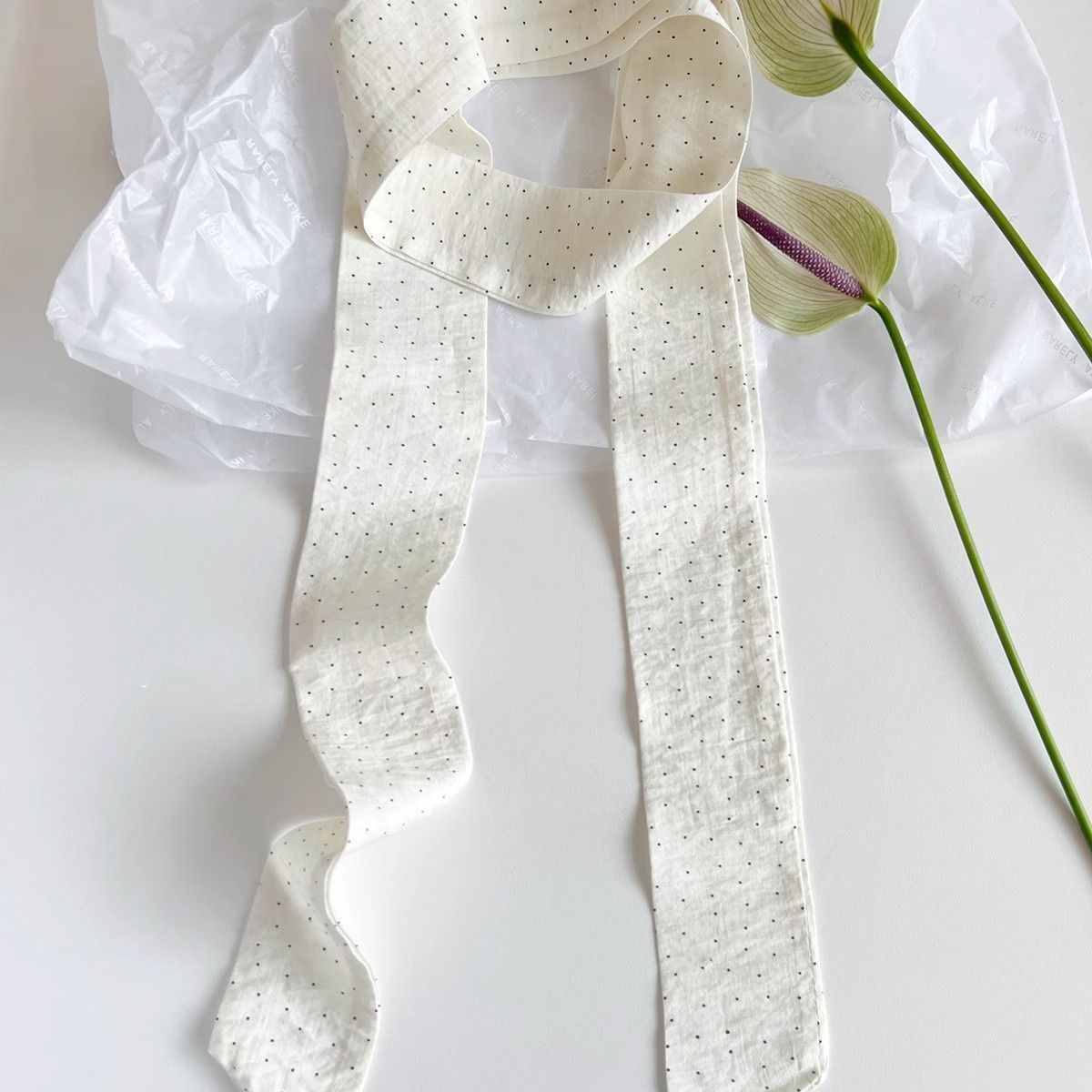 Bufanda Larga de Seda de Lunares de Moda Nicho Coreano Cinta Decorativa Estrecha para el Cabello para Mujer