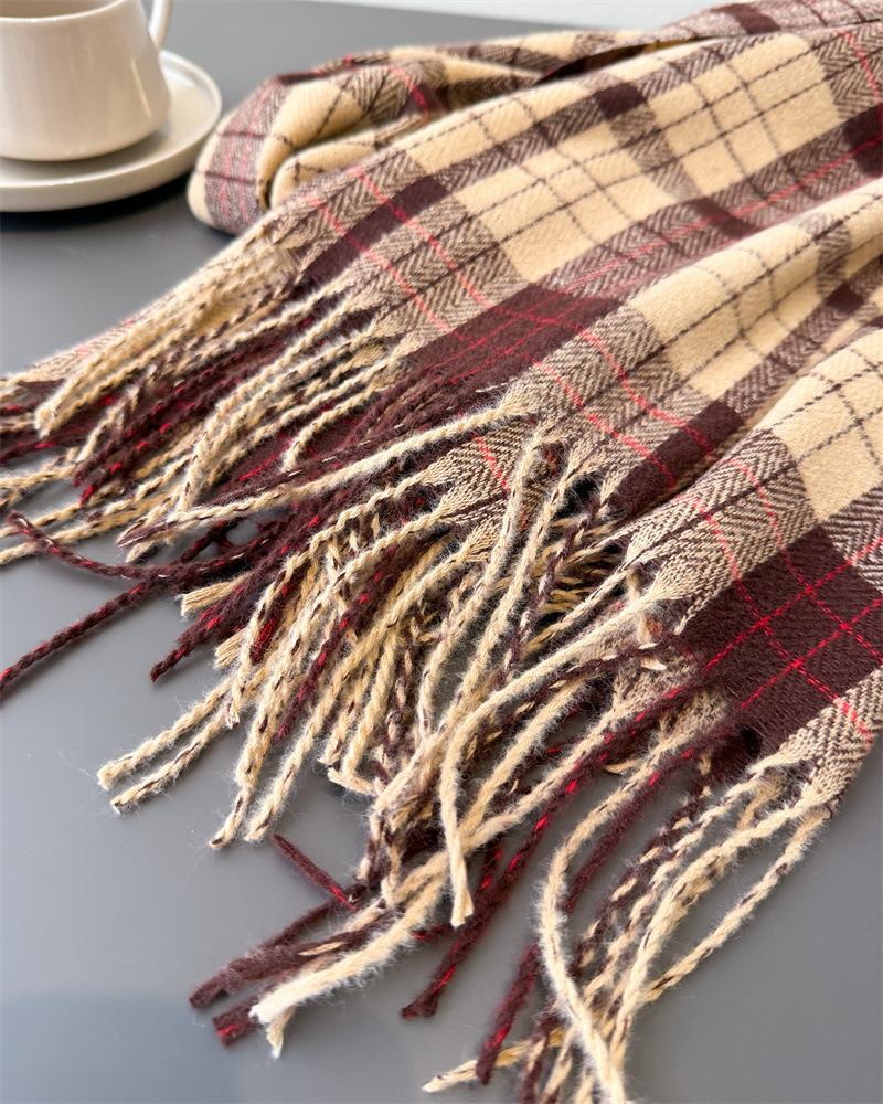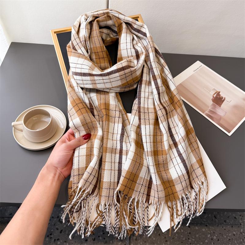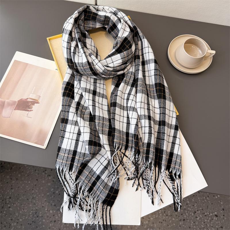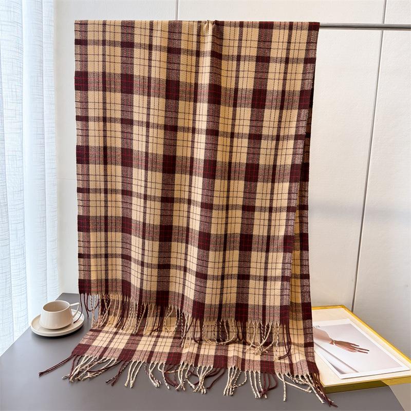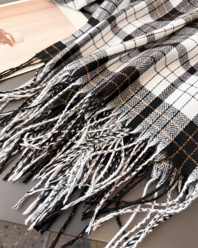 Chal Bufanda Clásica Retro Imitación Cachemira Cuadros Cálida Unisex Moda Otoño e Invierno Commuter Flecos