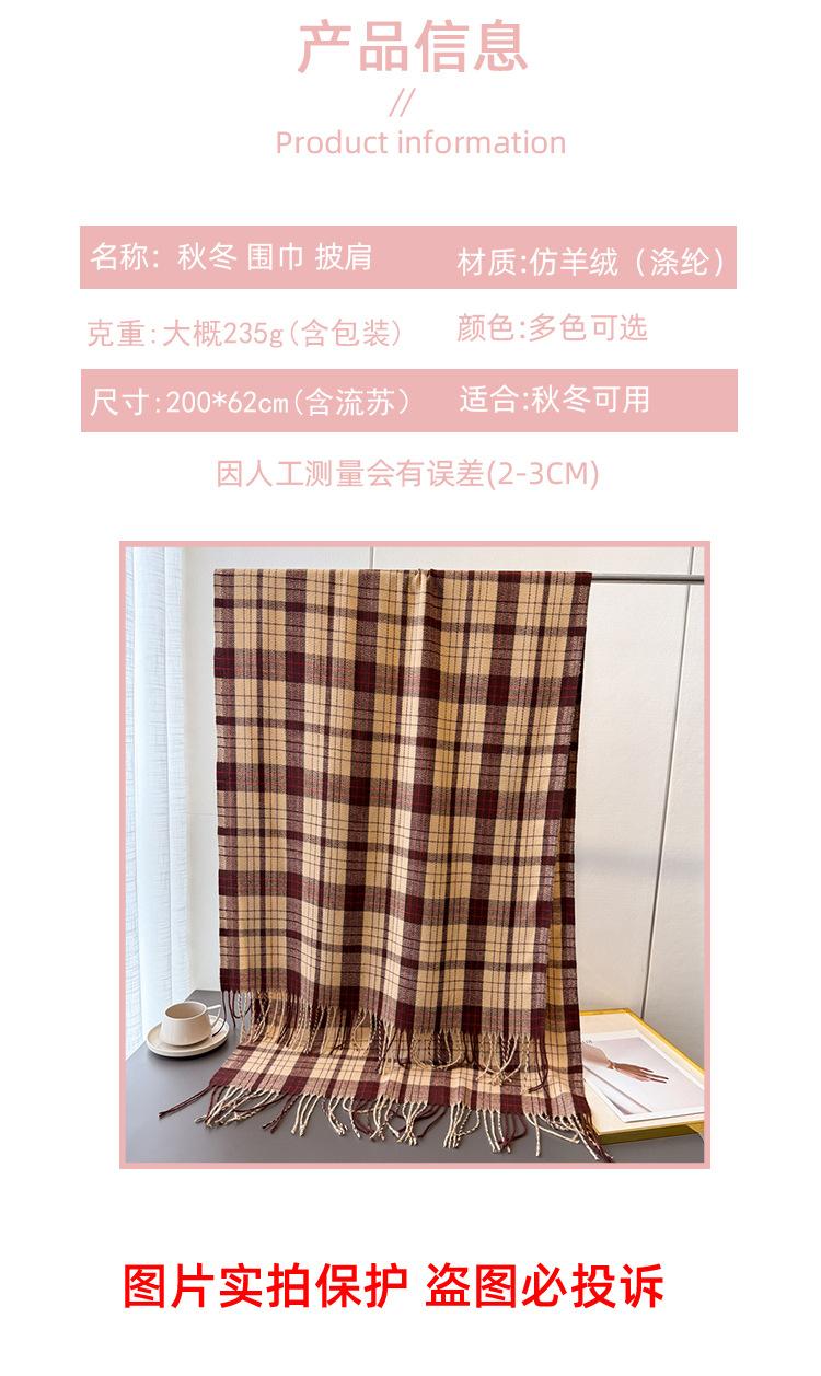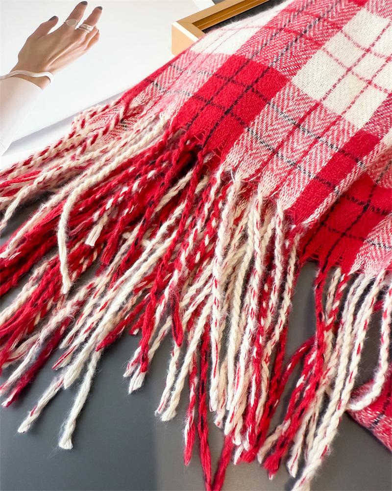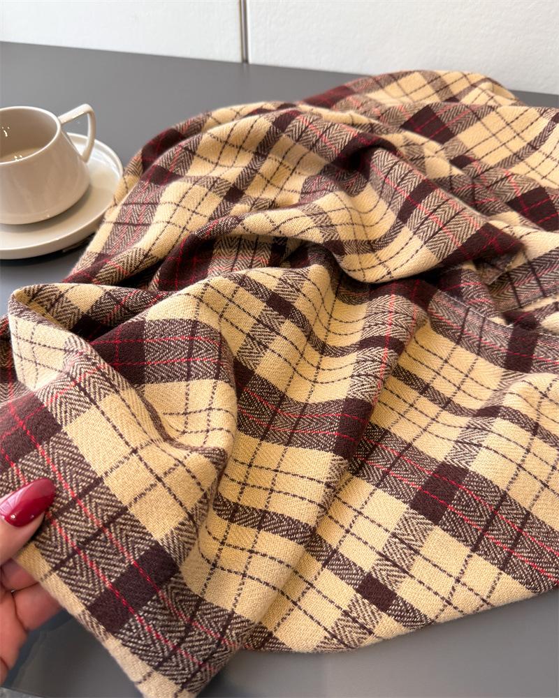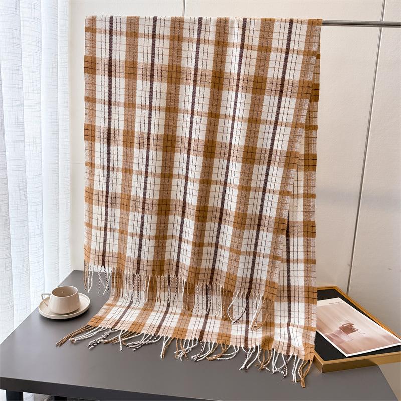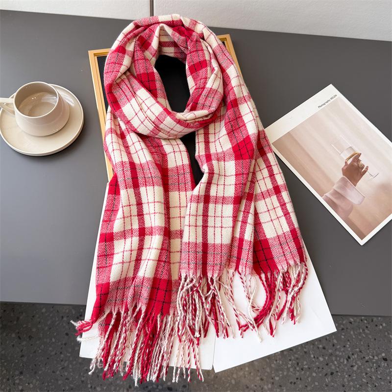 Chal Bufanda Clásica Retro Imitación Cachemira Cuadros Cálida Unisex Moda Otoño e Invierno Commuter Flecos