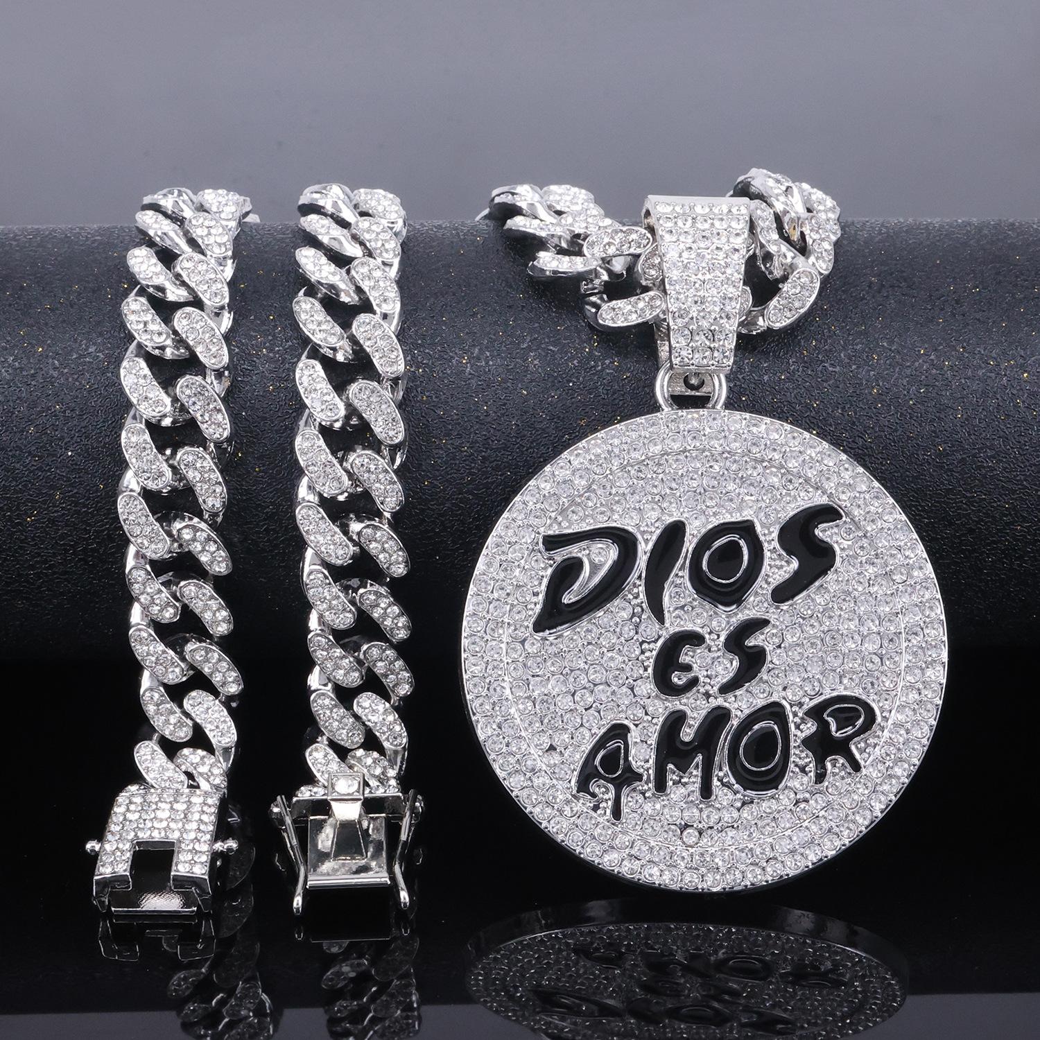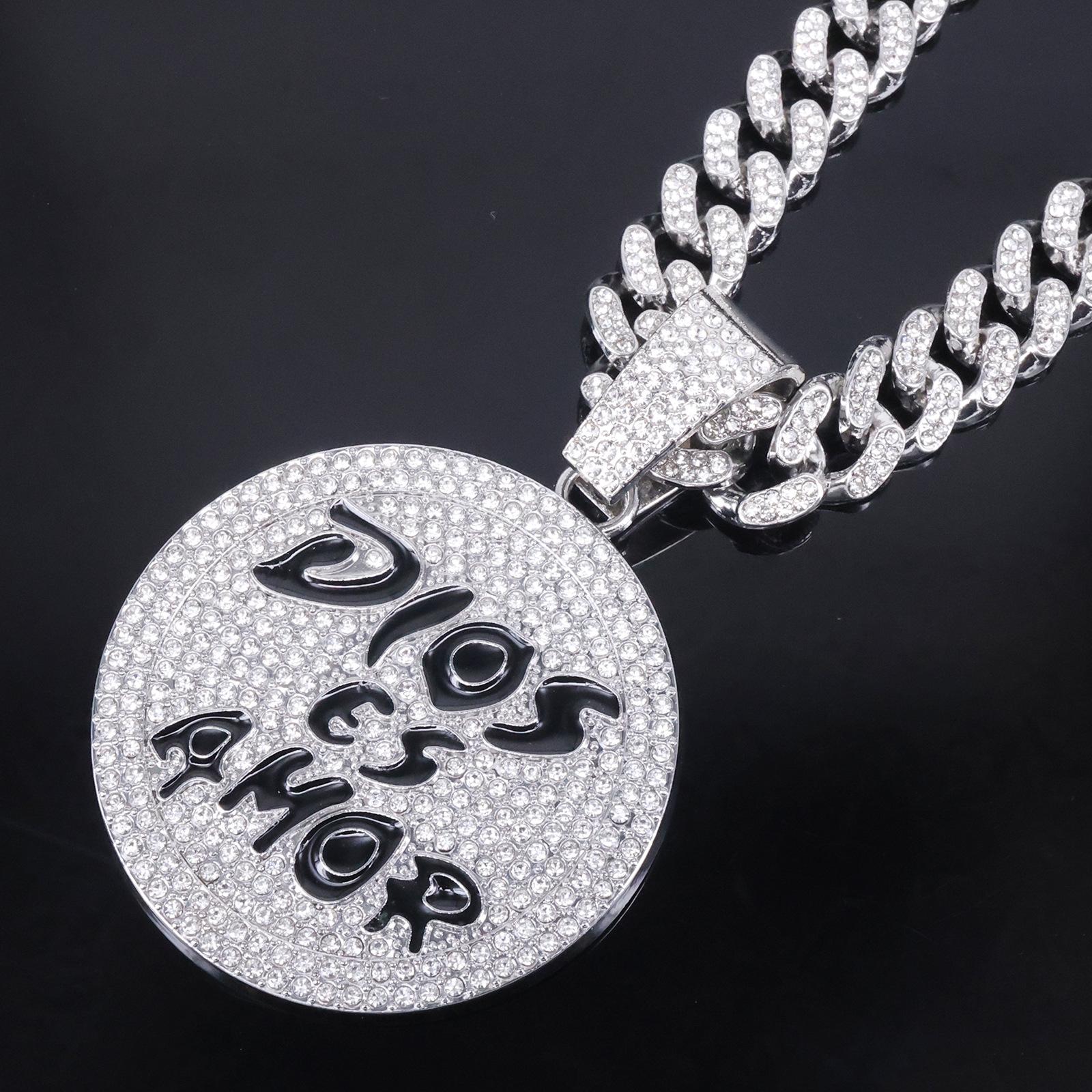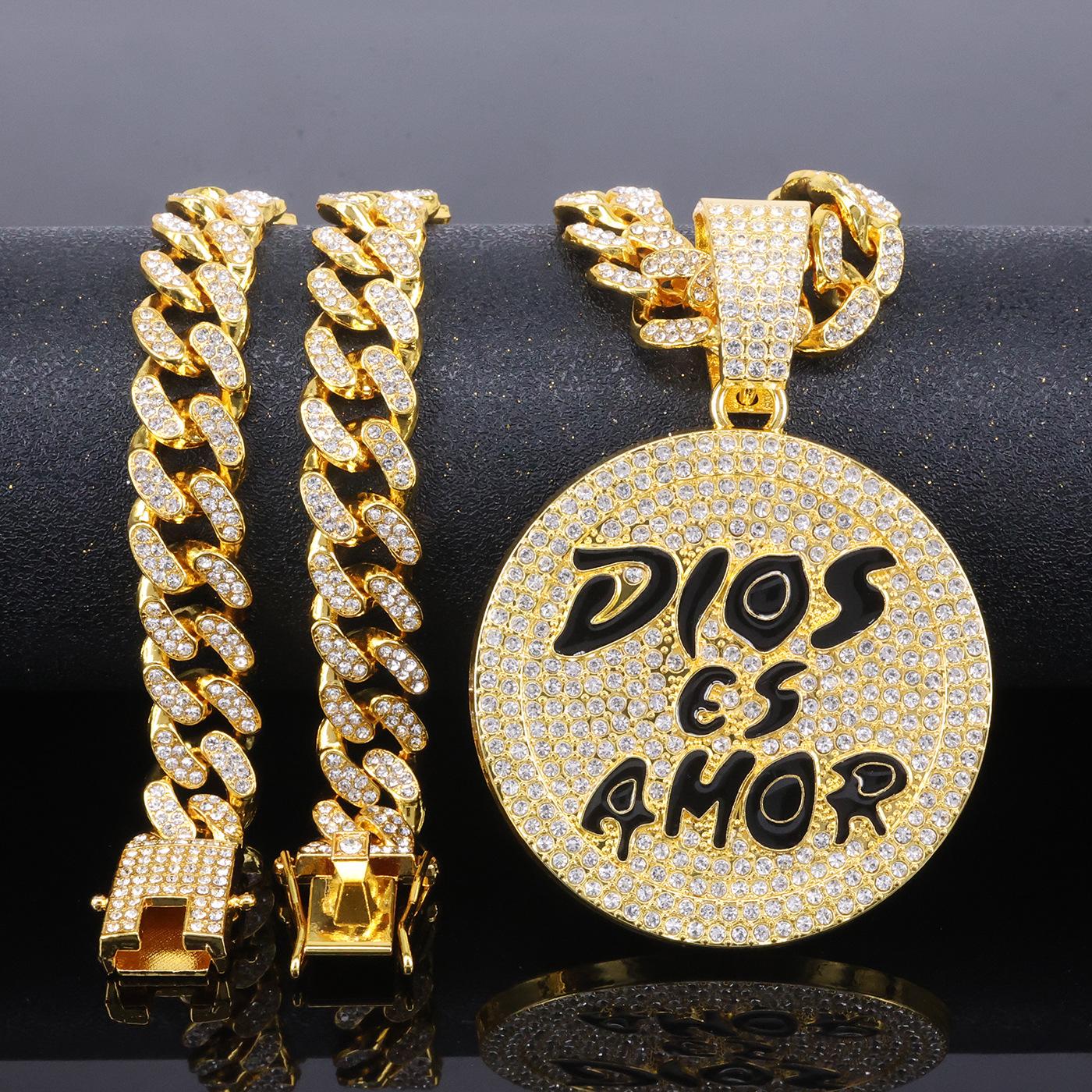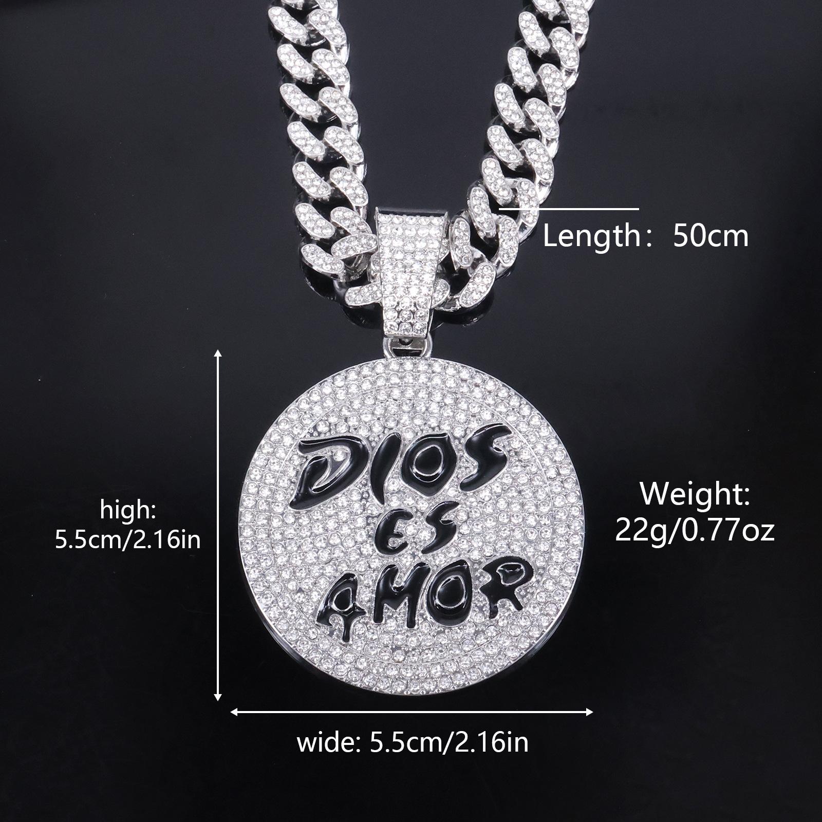 Nuevo Collar con Colgante Redondo de Marca en Inglés de Venta Caliente Transfronterizo Aleación Diamante Colgante de Letra Estilo Rap Punk para Hombre