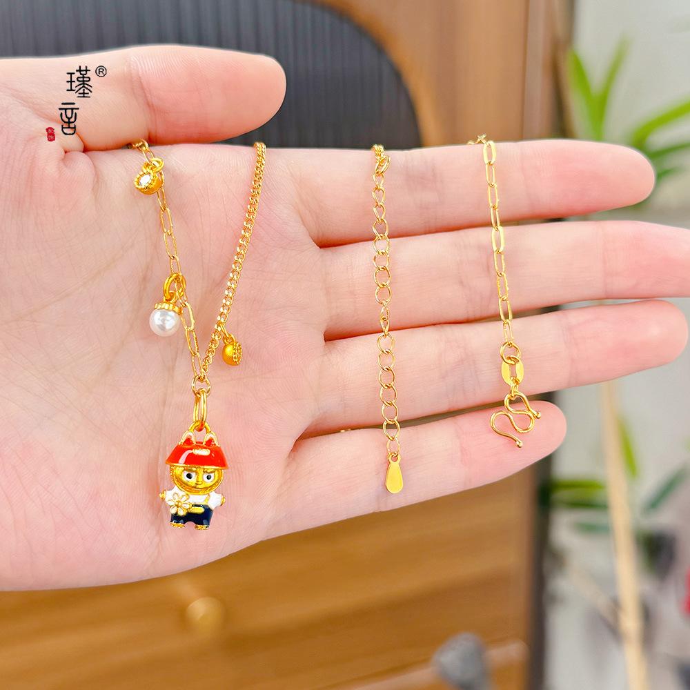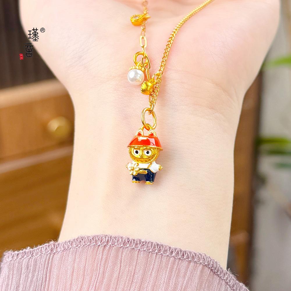 Collar Jinyan Gold Shop Estilo Similar Esmalte Degradado Dopamina Flor Rojo Labubu Dibujo Animado Lindo Cadena Clavícula