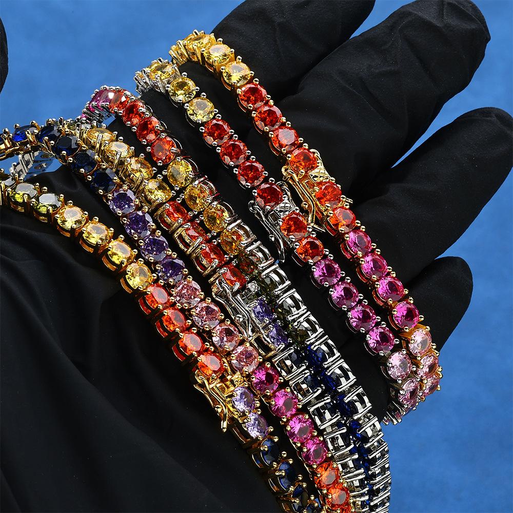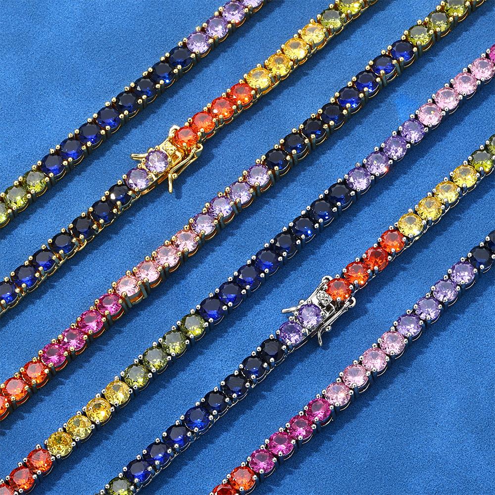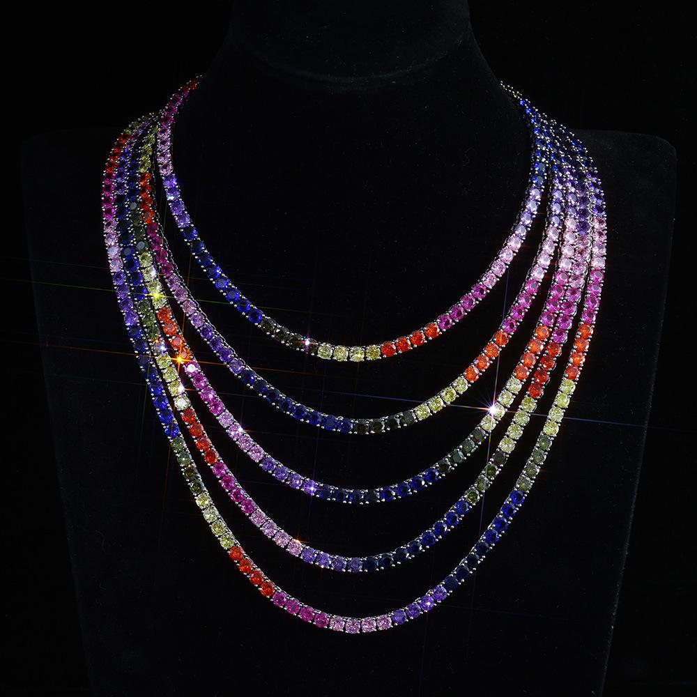 Cadena de Tenis de Circonita Colorida de 5 mm Transfronteriza Europea y Americana Hip-Hop Personalizada Trendy Accesorios de Joyería Collar para Hombre Personalización