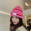 Gorro de Lana para Hombre Doble Capa Pulóver Engrosado Cálido Gorro con Etiqueta Dobladillo Bordado Invierno Gorro de Punto para Mujer Estilo Coreano Moderno