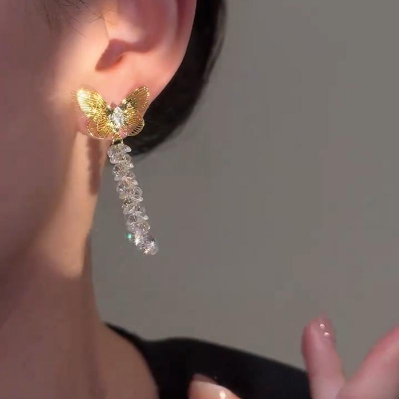 Hollow butterfly zircon earrings