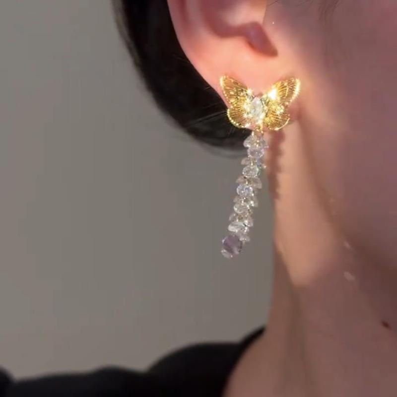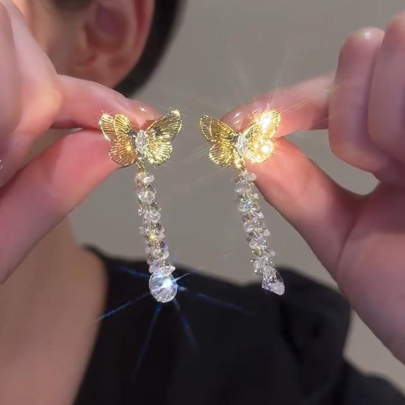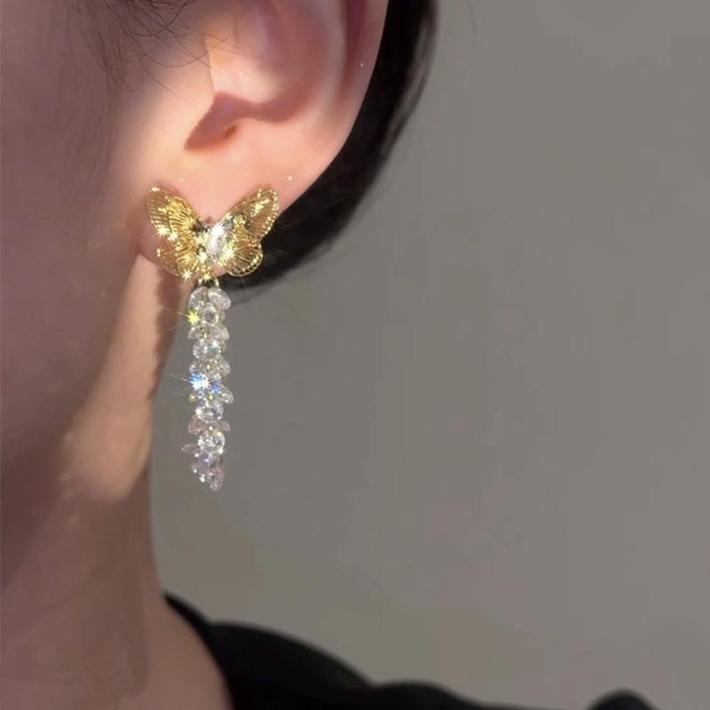 Pendientes de Borla de Zirconia de Mariposa Hueca Vintage de Aguja de Plata para Mujer, Lujo Ligero, Sentido de Alta Gama, Diseño de Nicho Exquisito, Pendientes Elegantes