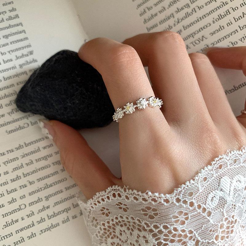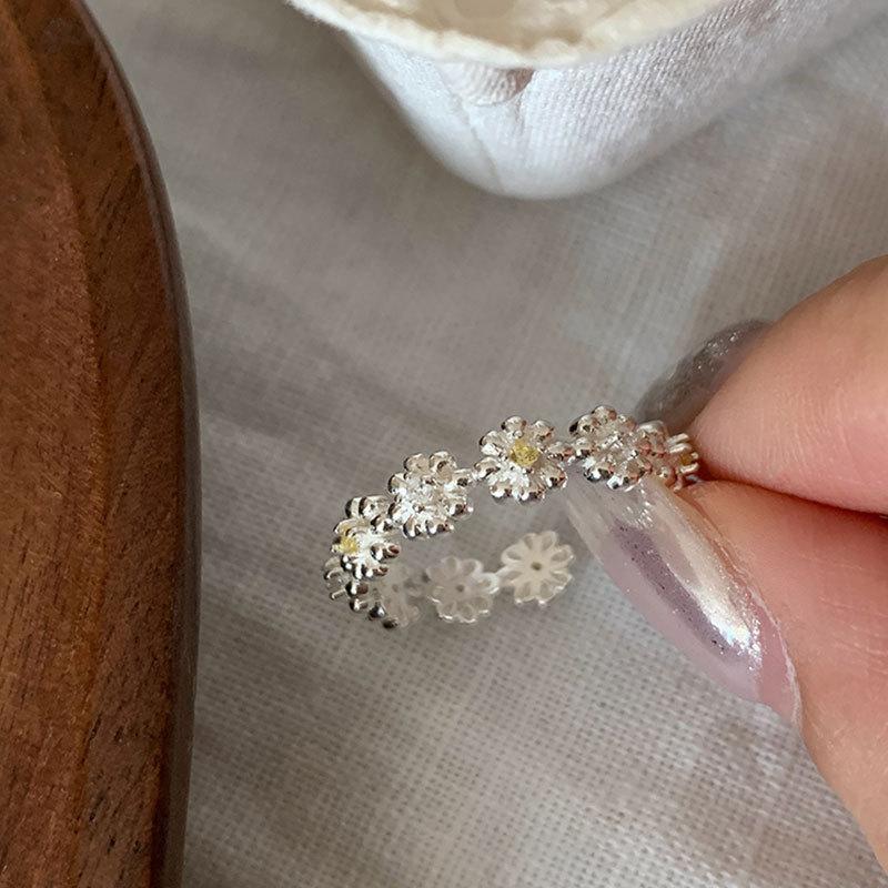 Anillo Abierto de Flor Dulce Simple para Mujer Nicho Exquisito Único Moda Elegante Anillo Combinable
