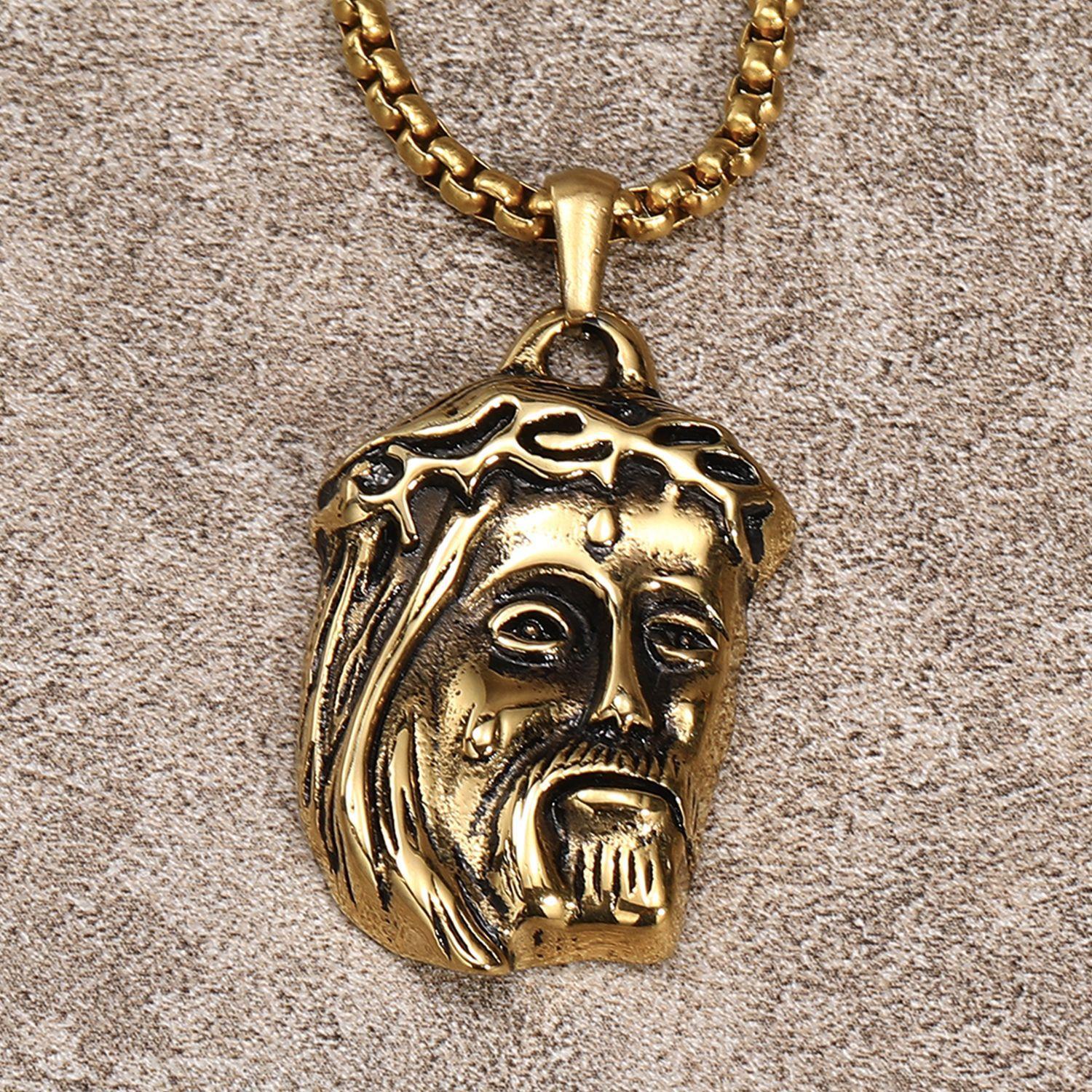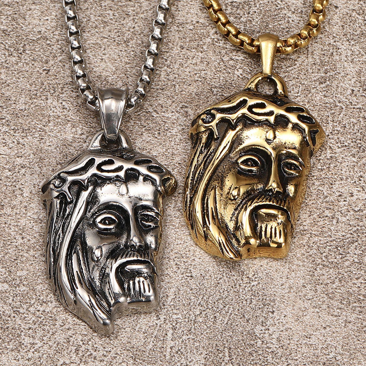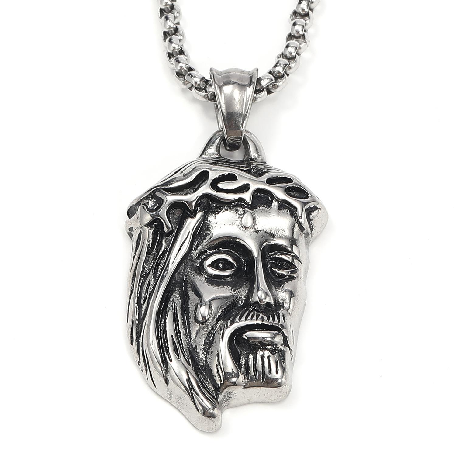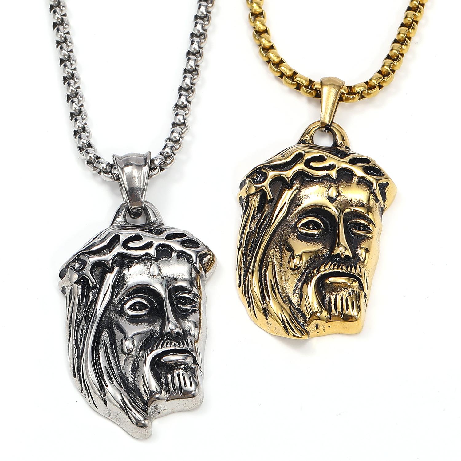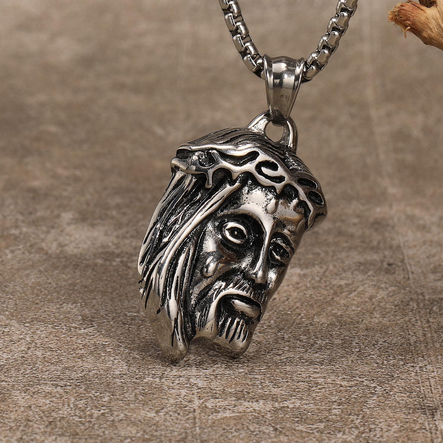 Colgante de acero inoxidable con retrato de personalidad punk retro europeo y americano hip hop, collar sencillo de moda callejera para hombre, al por mayor