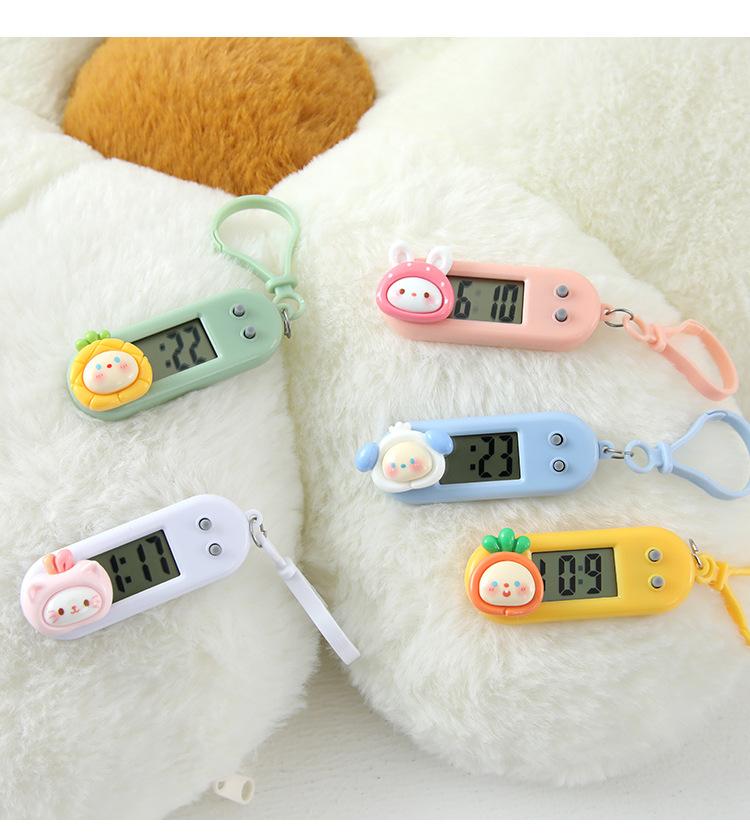 Lindo Mini Reloj de Bolsillo Portátil de Dibujos Animados Reloj Electrónico Examen de Estudiante Clase Horario Llavero