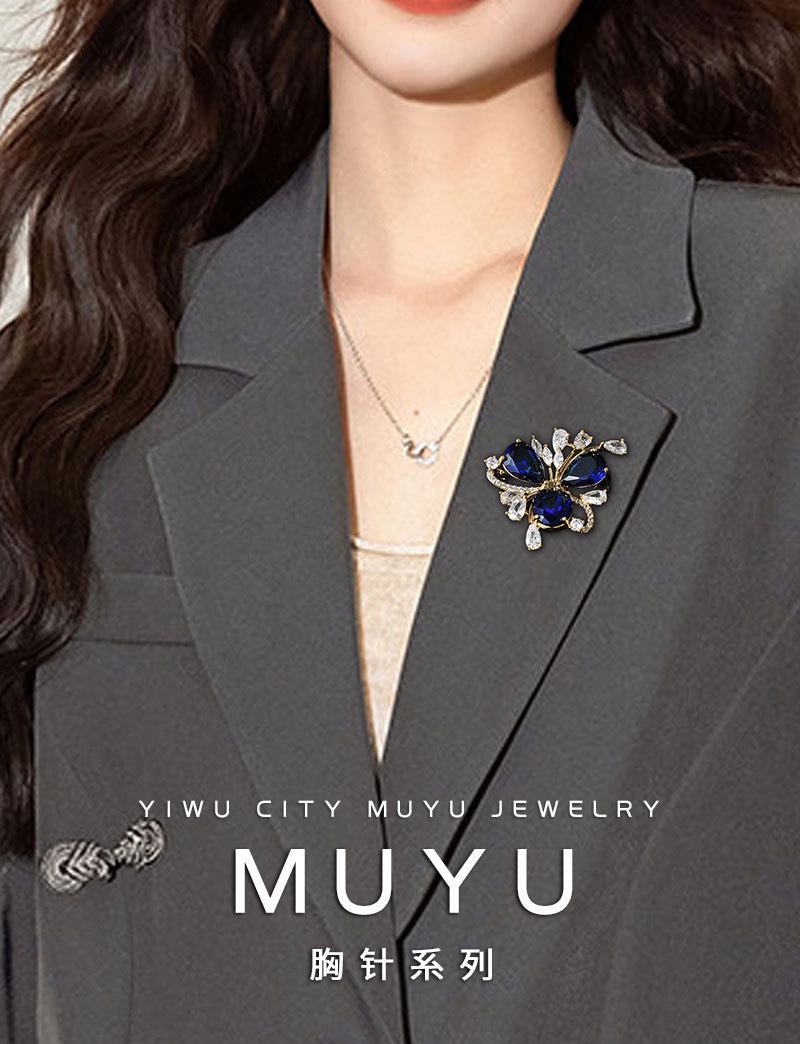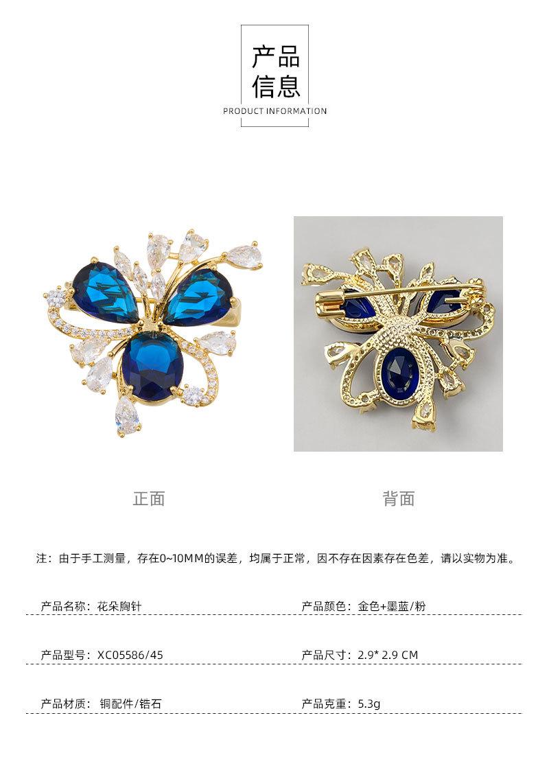Fashionable and high-end micro-encrusted zirconium ink blue corsage