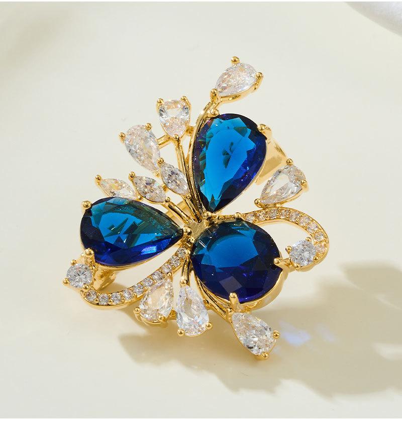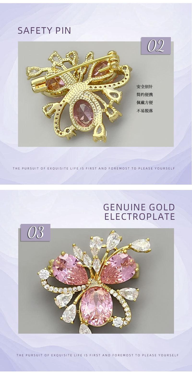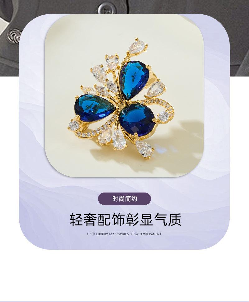 Broche de Flor Lujoso y Elegante, Corsage Azul Tinta de Zirconio Micro-Incrustado Moderno y de Alta Gama, Exquisito Broche Femenino