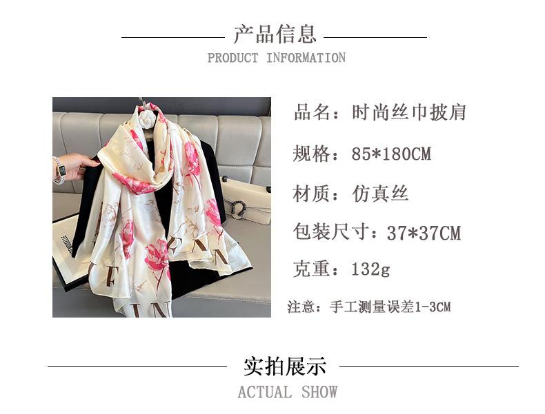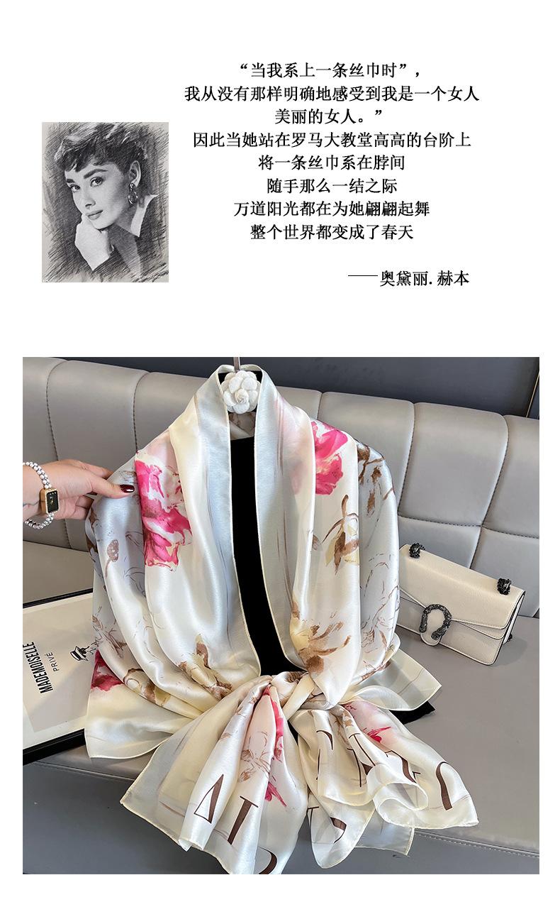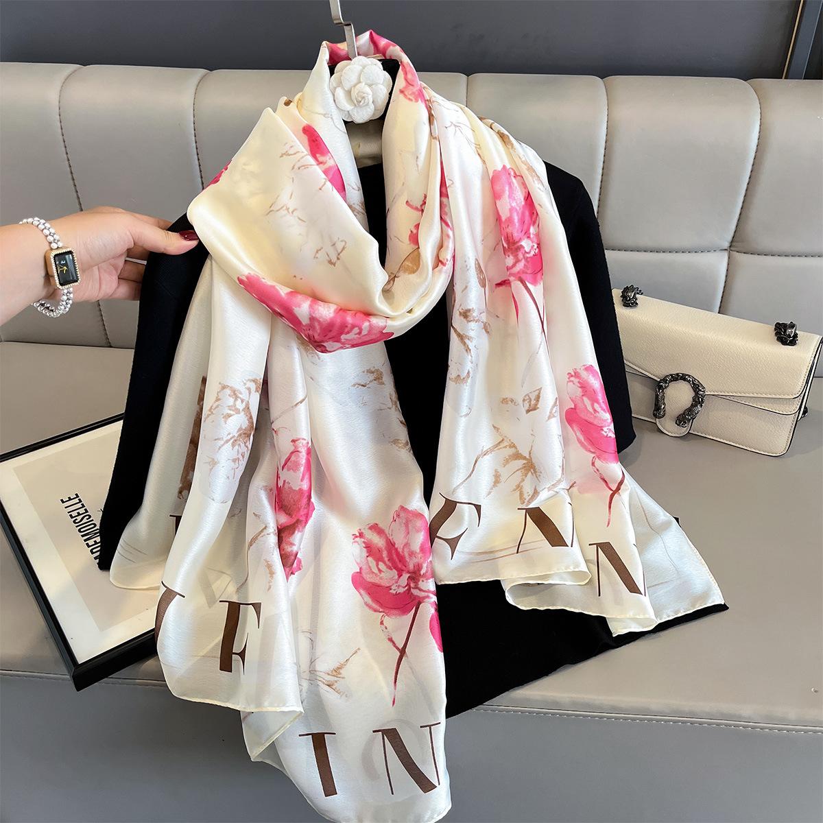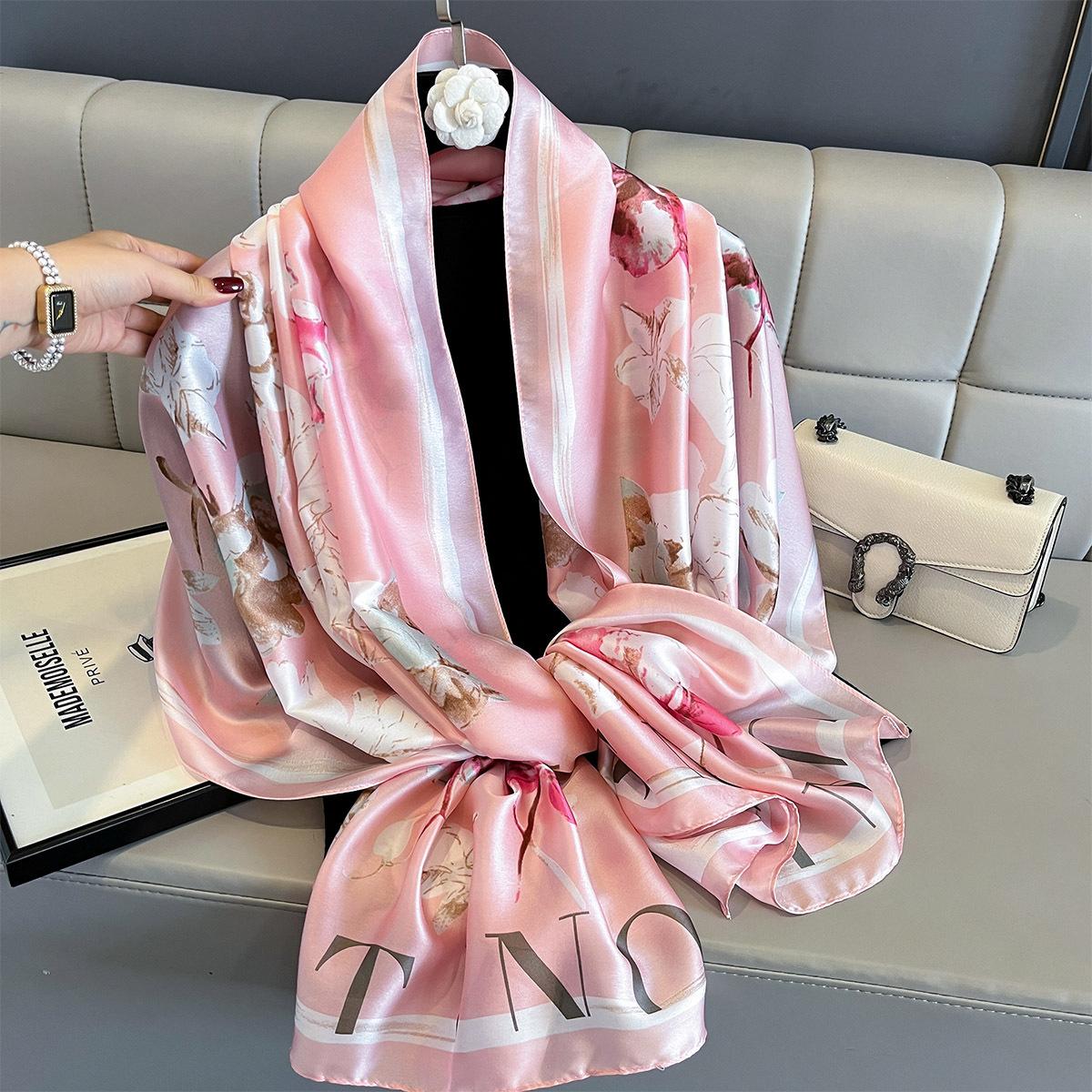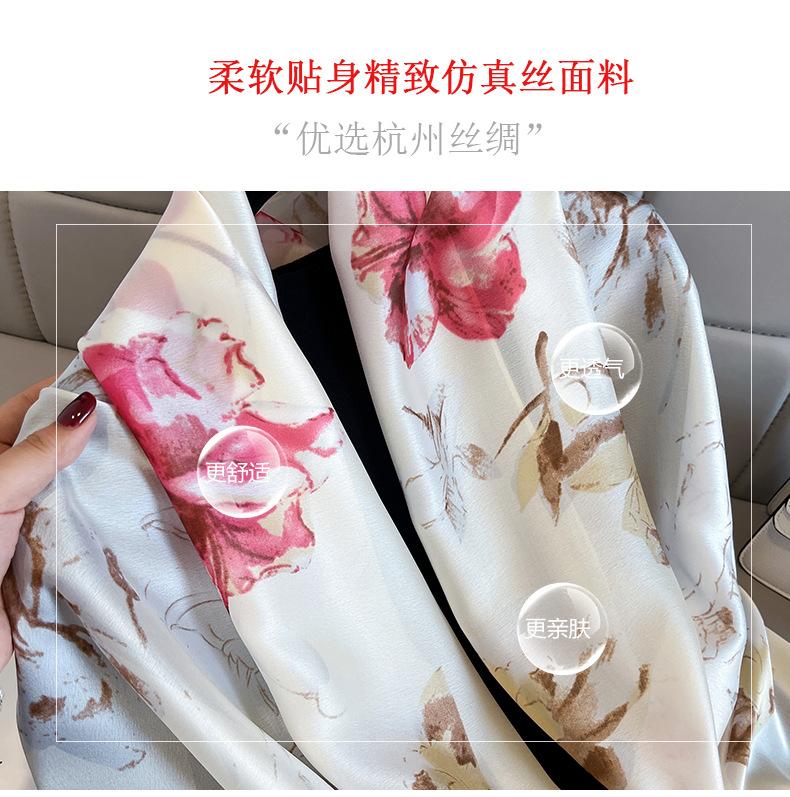 Primavera y Verano Nuevo Versátil Satén Estampado Bufanda Larga Protección Solar Chal Grande Bufanda Decorativa Versátil Turbante Multifuncional