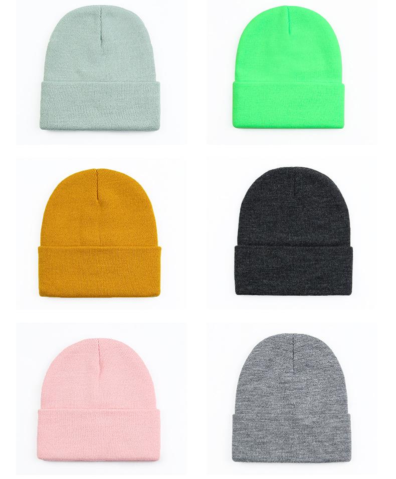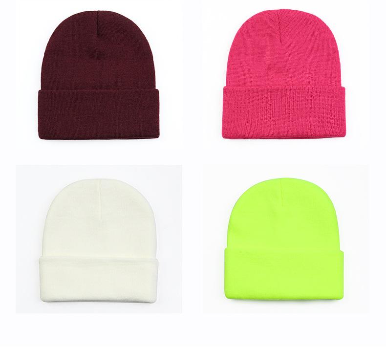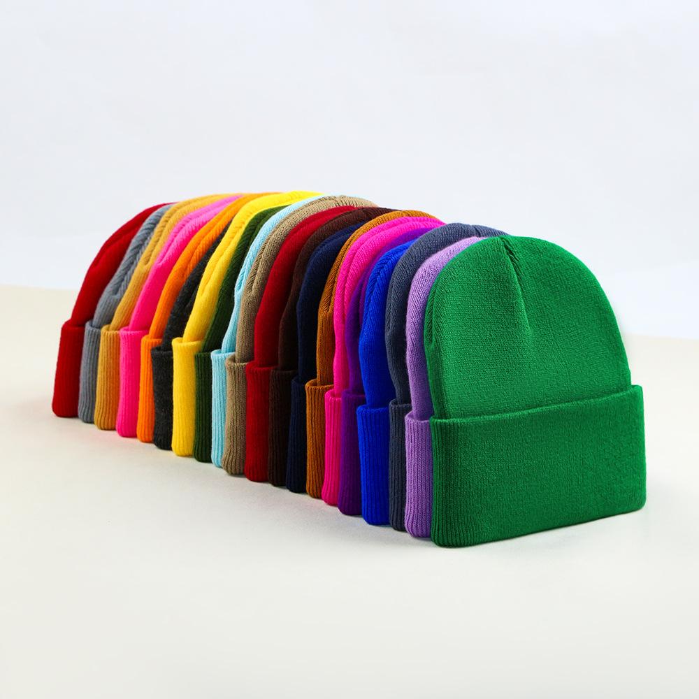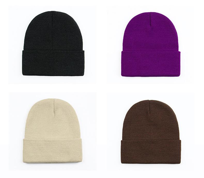 Gorro de Lana de Color Sólido de 65g Otoño Invierno Gorro para el Frío Gorro Tejido Gorro Pulóver Patrón de Logotipo de Flor Bordada Impresa Texto