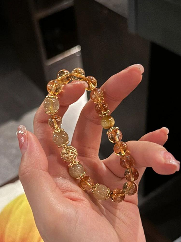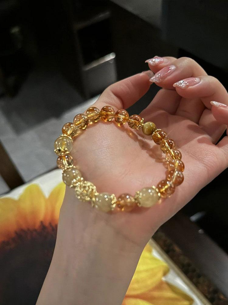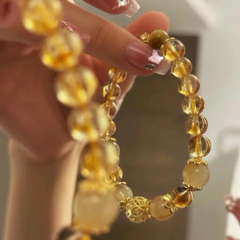 Pulsera de Citrino Natural Pulsera Cristal Cabello Dorado Ojo de Tigre Lujo Ligero Alto Sentido Cristal con Cuentas Nicho Sentido del Diseño