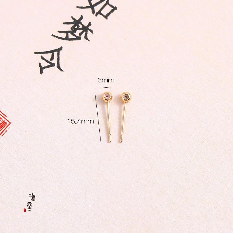 14 packs of gold 3mm rubber bead earrings 1 pair without ear plugs