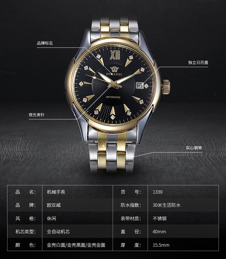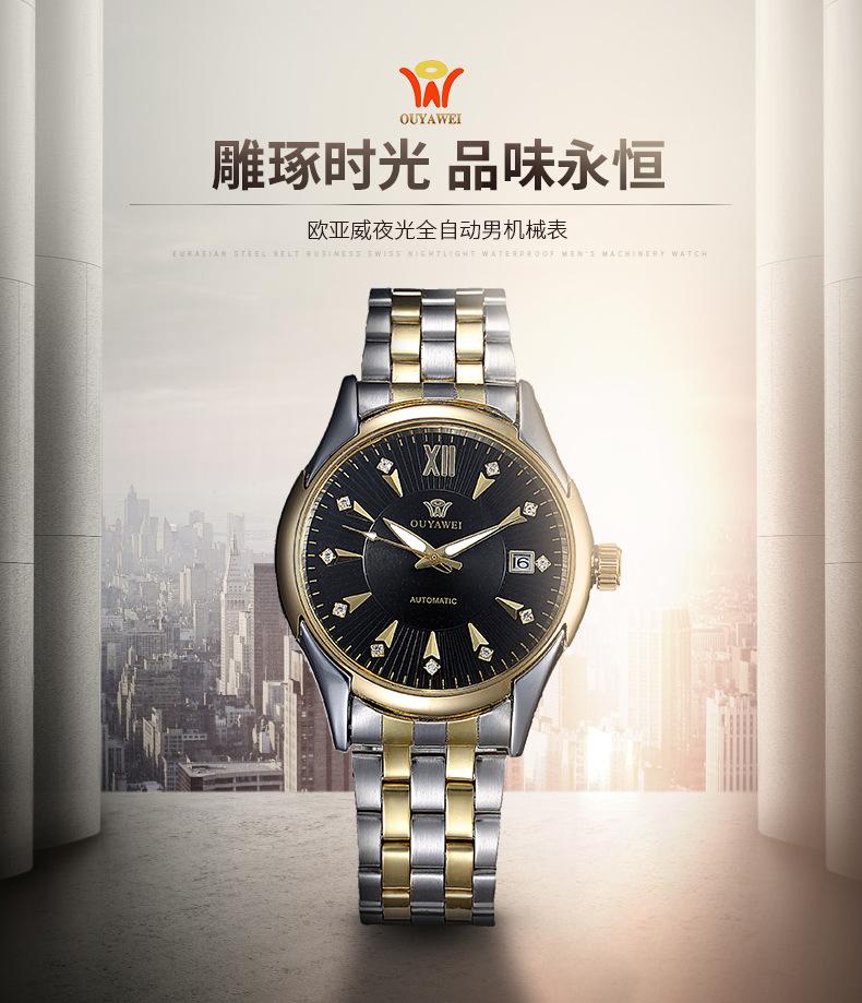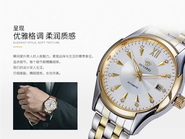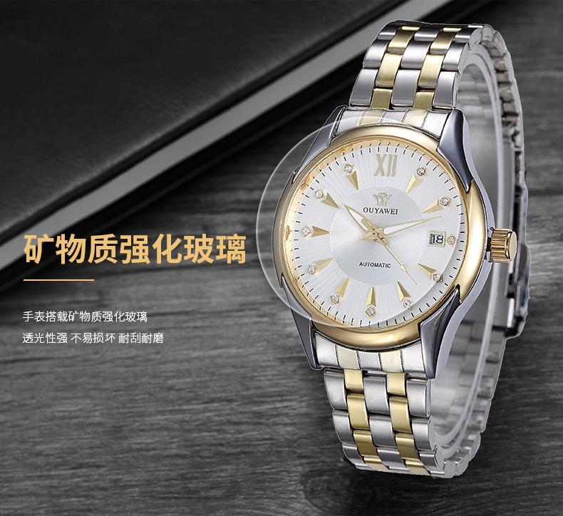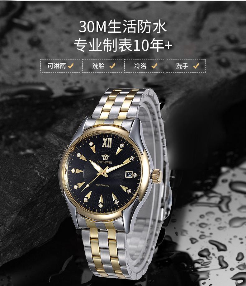 Reloj Mecánico Automático para Hombre Marca Ouyawei Agua Suministro Comercio Exterior Luminoso Negocios Reloj de Pulsera para Hombre