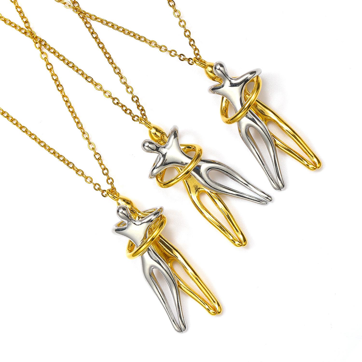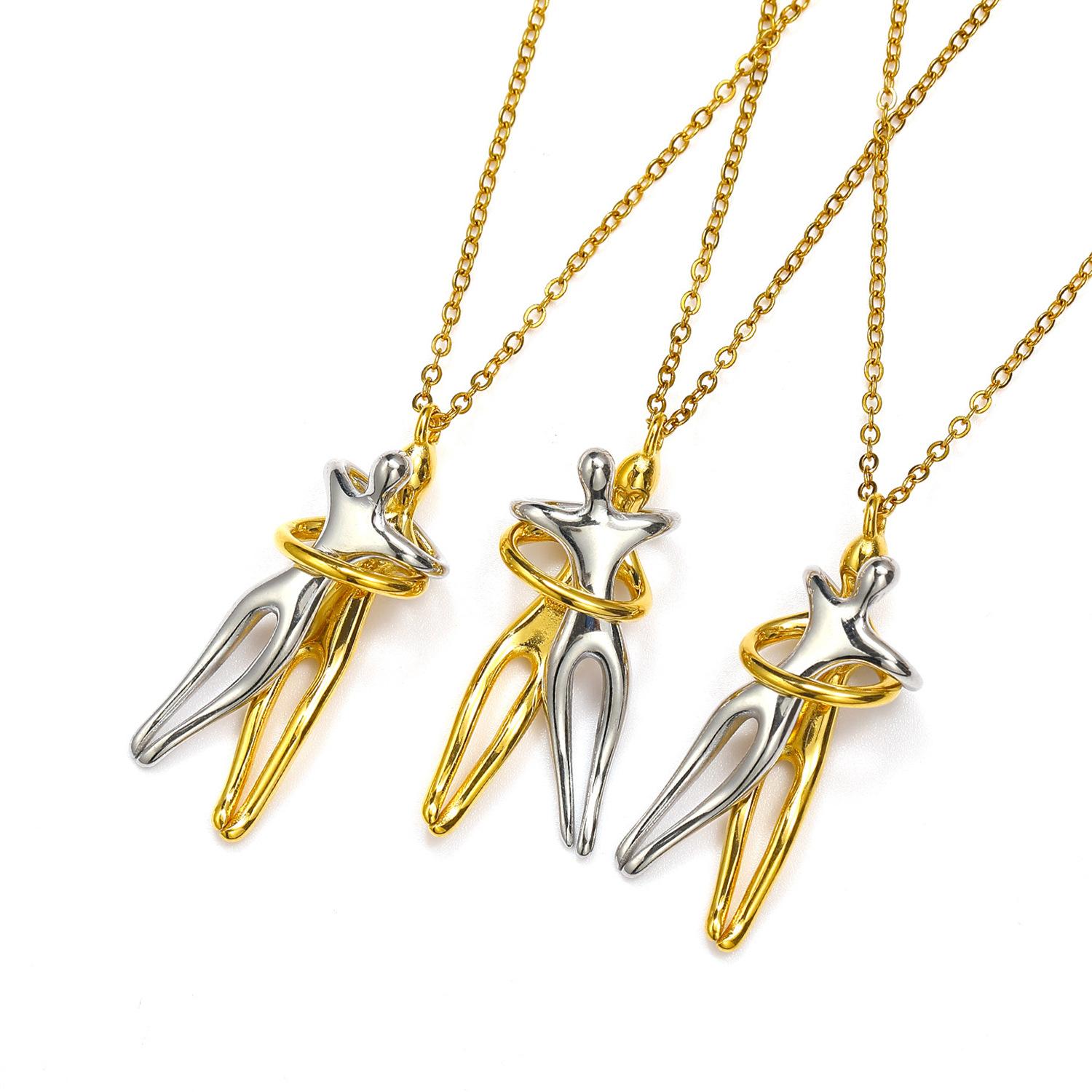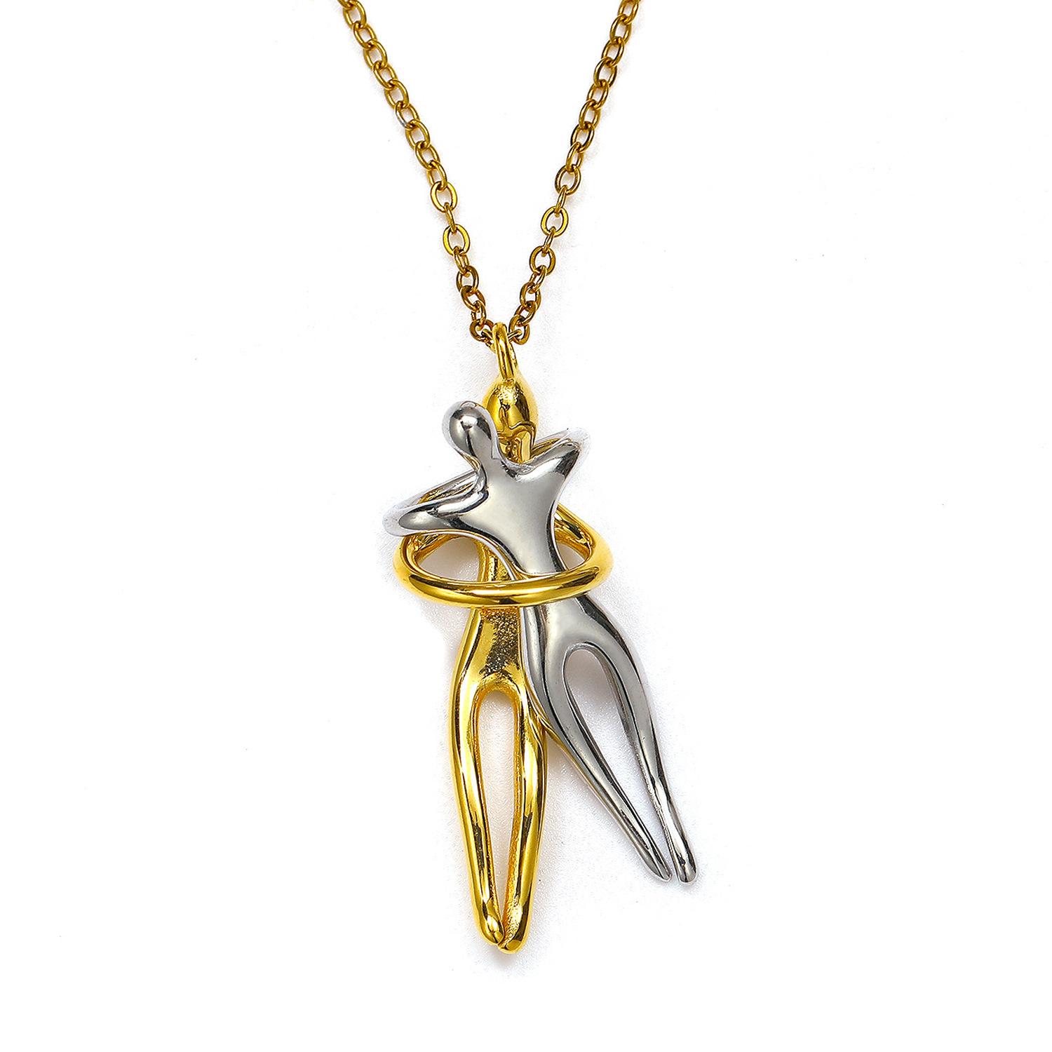 Nuevo Collar de Pareja Creativo de Nicho Abrazo Acero Titanio Ins Moda Diseño de Color en Contraste Colgante Personalizado Regalo Venta Directa