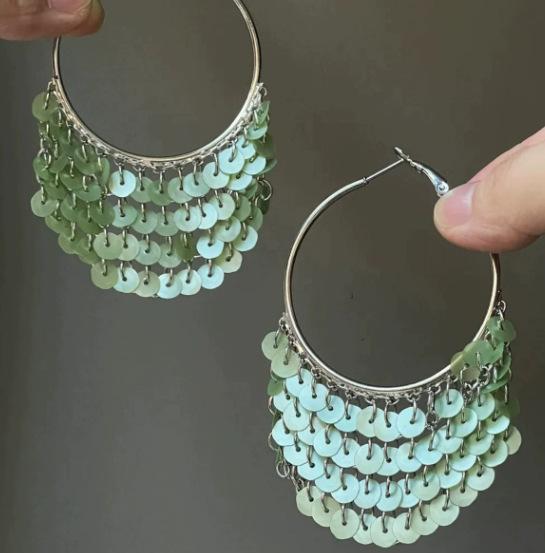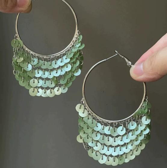 Pendientes de Aro de Lentejuelas Exagerados de Moda para Mujer Diseño Nicho de Alta Gama Versátiles Pendientes de Celebridad de Internet para Mujer 2025 Nueva Tendencia