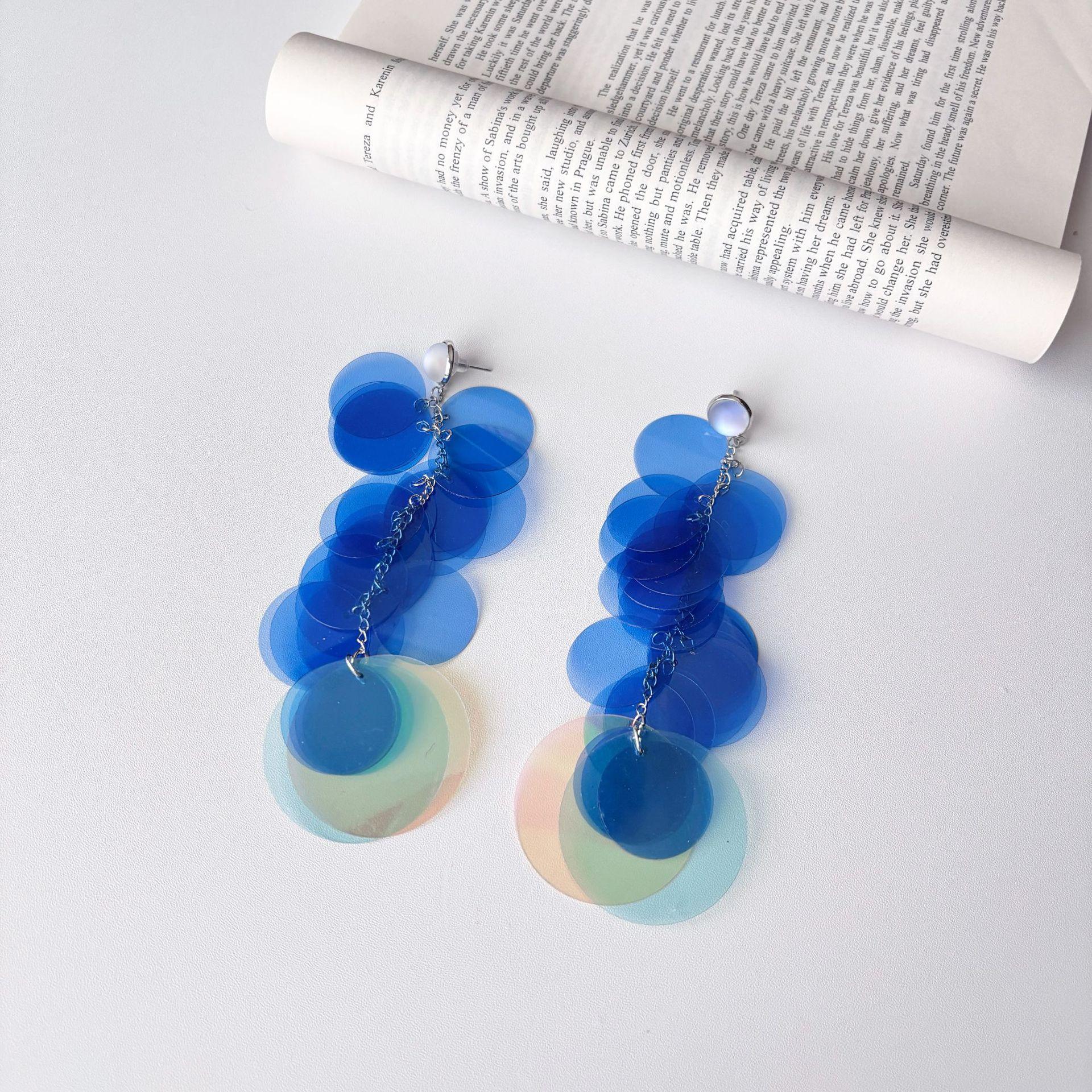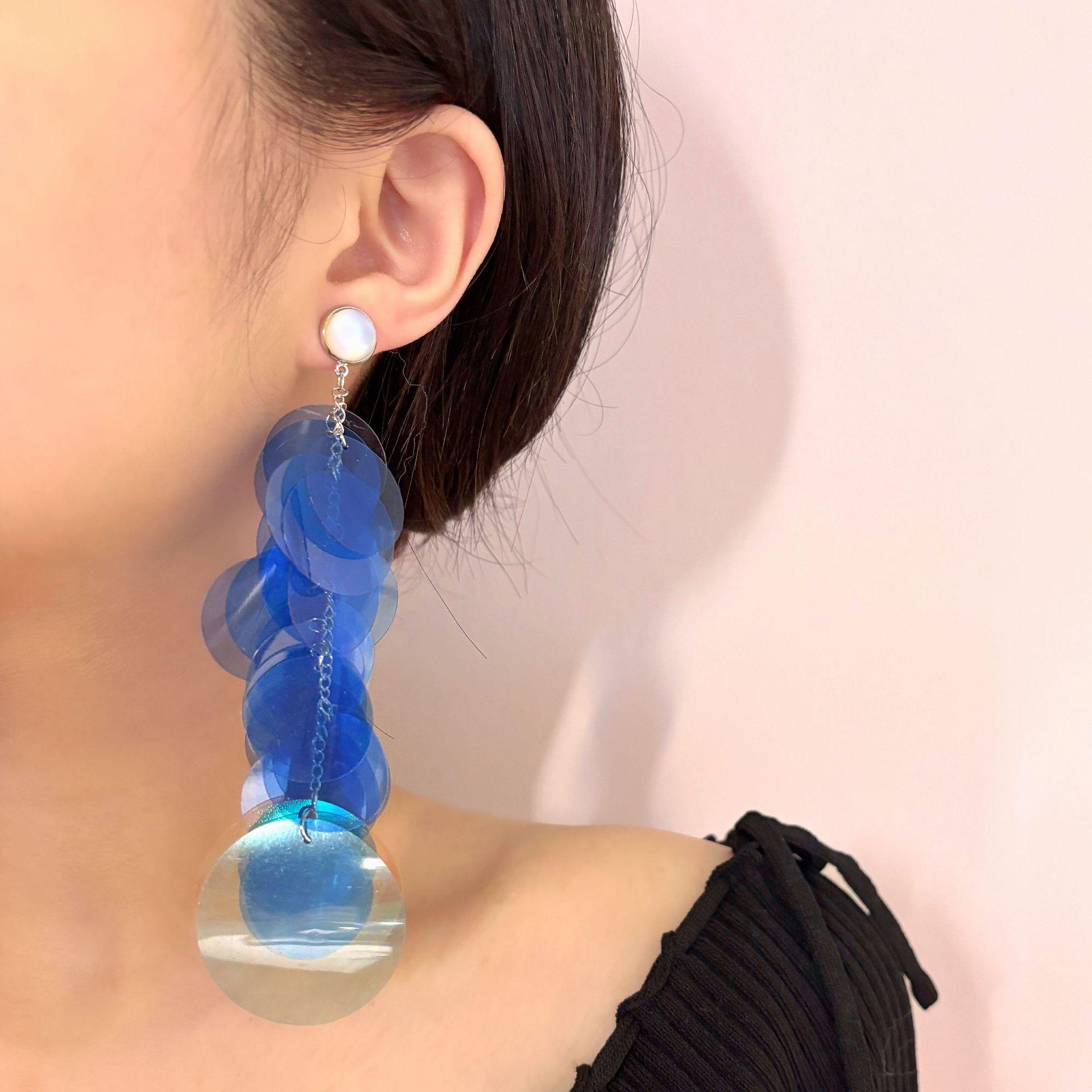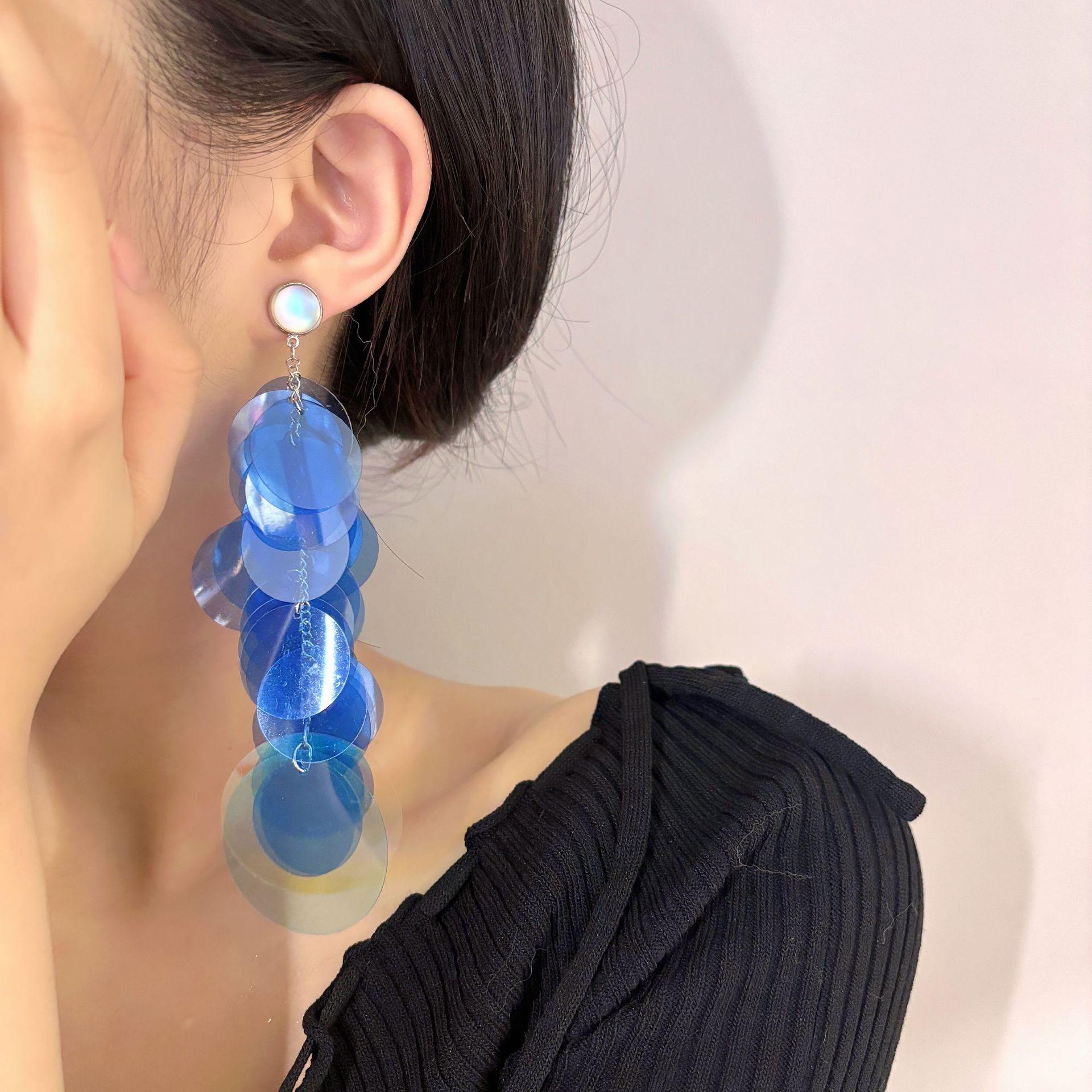 Aretes de Disco Azul de Lujo Ligero Francés Aretes para Mujer Diseño de Temperamento Nicho Aretes Exagerados Accesorios