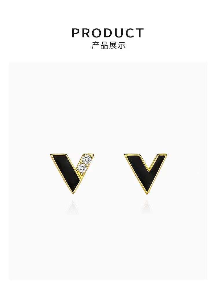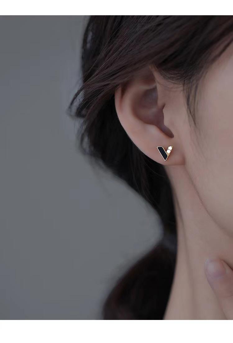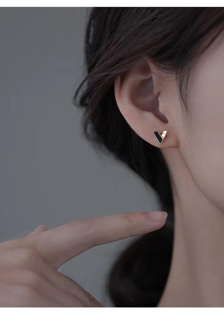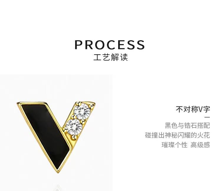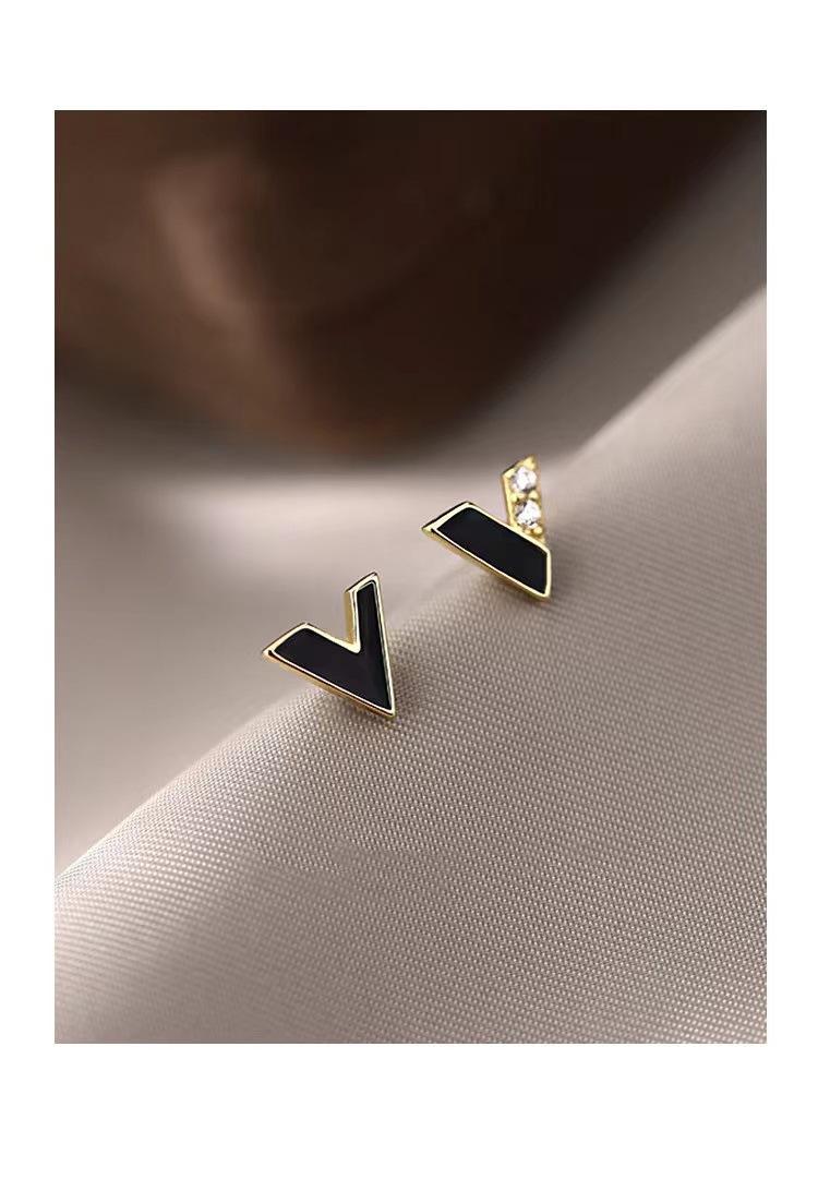 Aretes Simples en Forma de V Aretes Asimétricos de Diamantes en Forma de V para Mujer Sentido de Diseño de Nicho Personalidad Sentido de Alta Gama Aretes Mujer