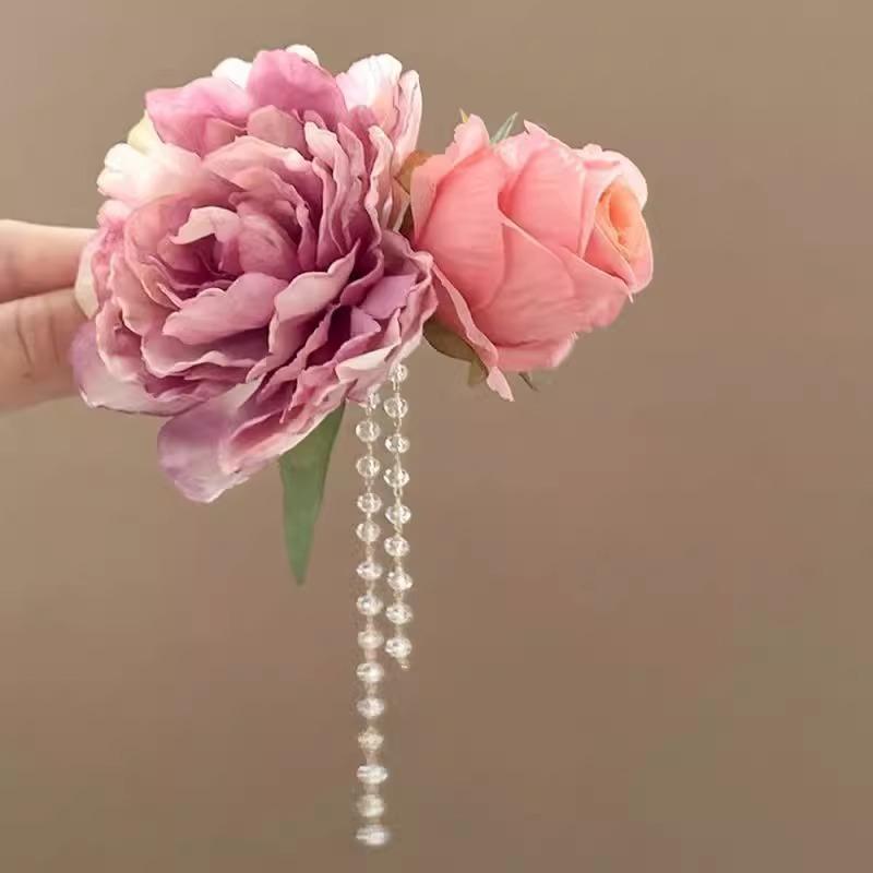Horquilla de Peonía Rosa Flor Nuevo Chino Retro Flor Borla Accesorios para el Cabello 2025 Nuevo Estilo Nacional Hanfu Mujer
