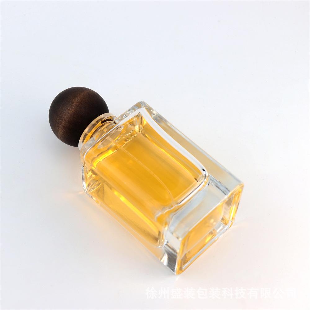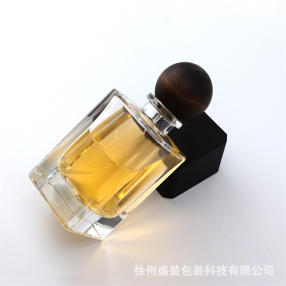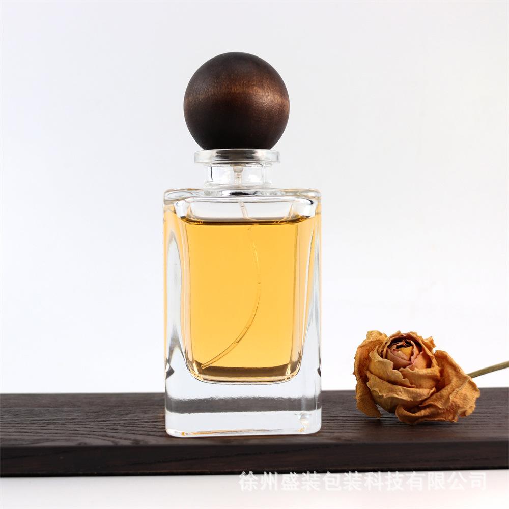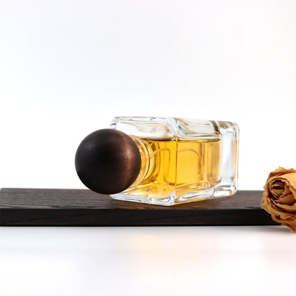 Botella de Perfume de Moda Empaque Transparente 15 Botella de Vidrio con Atomizador de Bayoneta con Tapa de Bola de Madera de Loto Botella de Perfume Botella Vacía