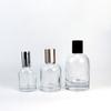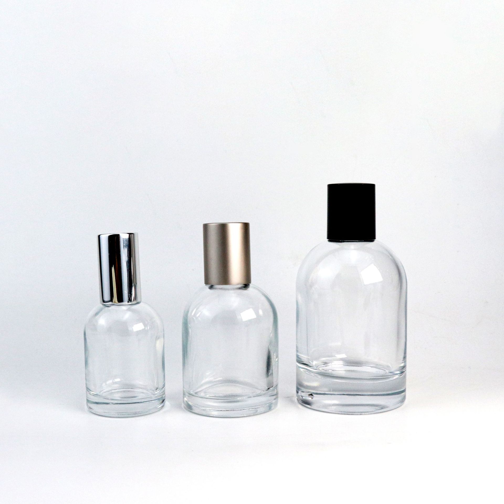 Botella de perfume portátil de alta gama con atomizador de vidrio grueso y base gruesa.